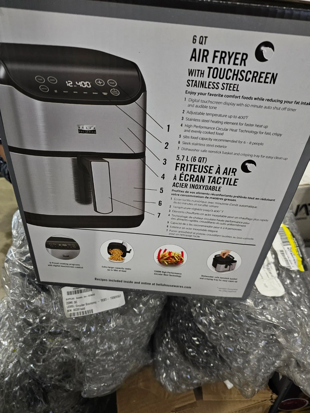 I'm selling a Bella Pro Series 6QT Air Fryer with Touchscreen in Stainless Steel! It's in great condition and ready for a new kitchen.