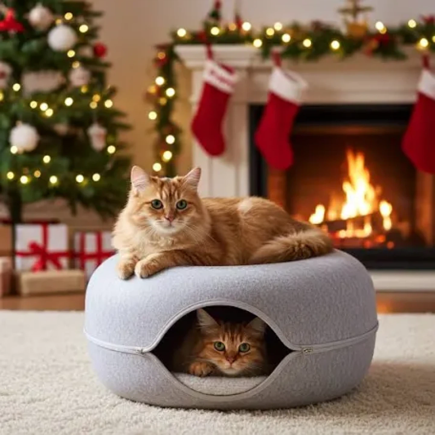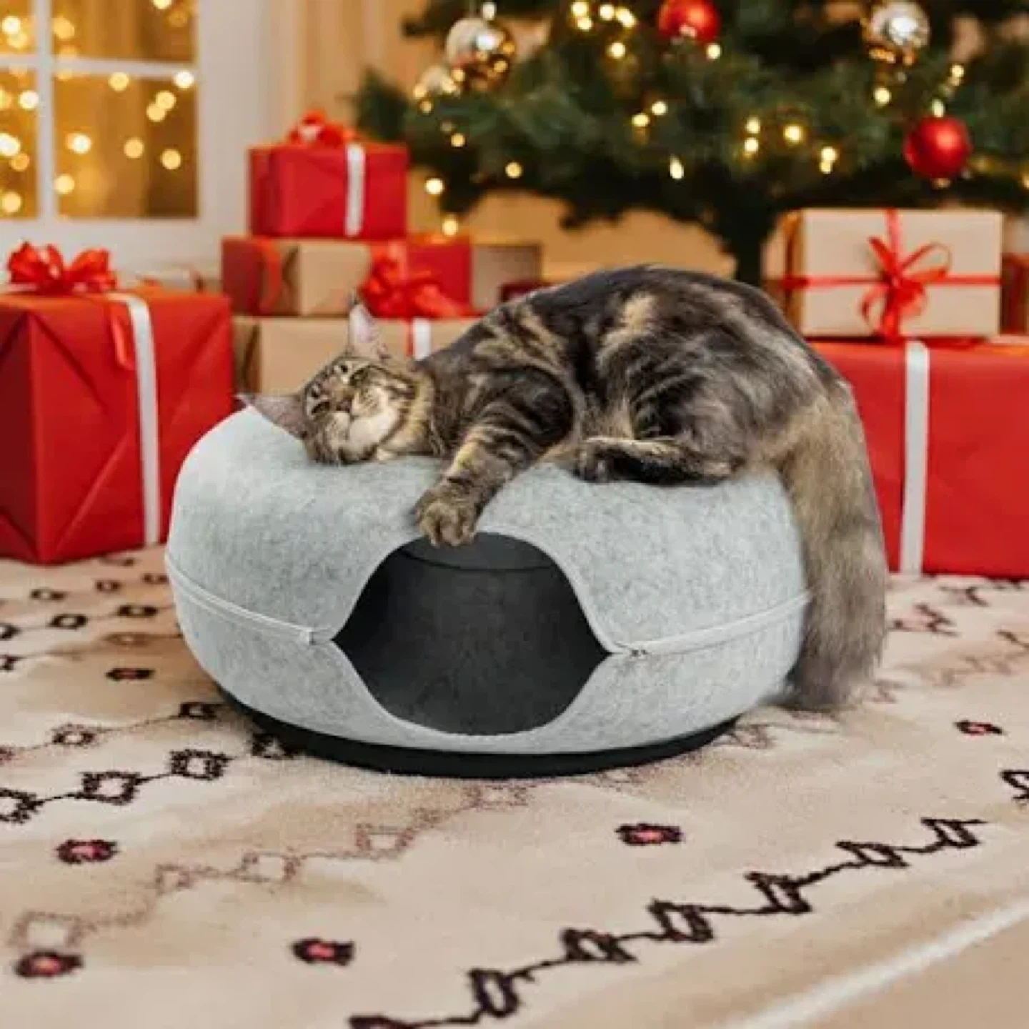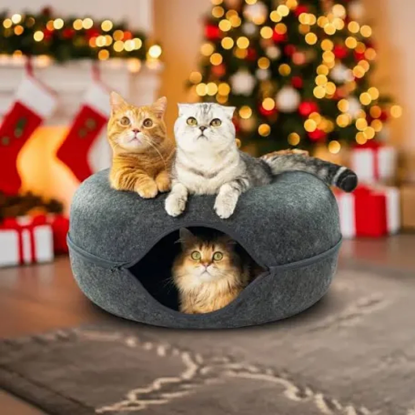 Brand new and great holiday gift! Calm your cats' nerves and provide hours of entertainment with the Peekaboo Cat Cave! Its elegant design maximizes comfort for cats of all sizes, featuring an ultra-secure bed, spacious tunnel, and a super-cozy hideaway cave. Join 100,000+ pet parents who've changed their lives with cats! This is the Jumbo size which is great for households with multiple cats to play and rest together.
