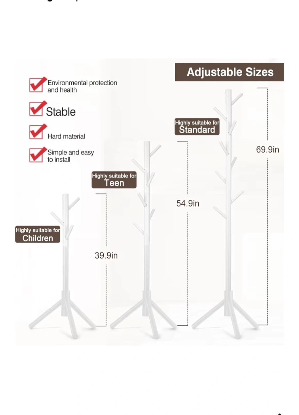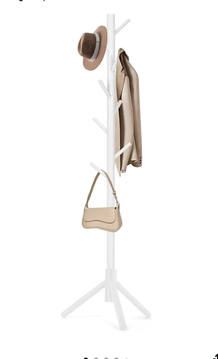 Selling an adjustable coat rack that's in excellent condition! It's white and features a stable, hard material design. It's also simple and easy to install. Perfect for hanging coats, hats, and bags!