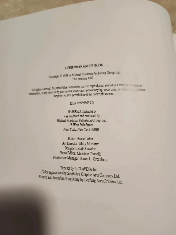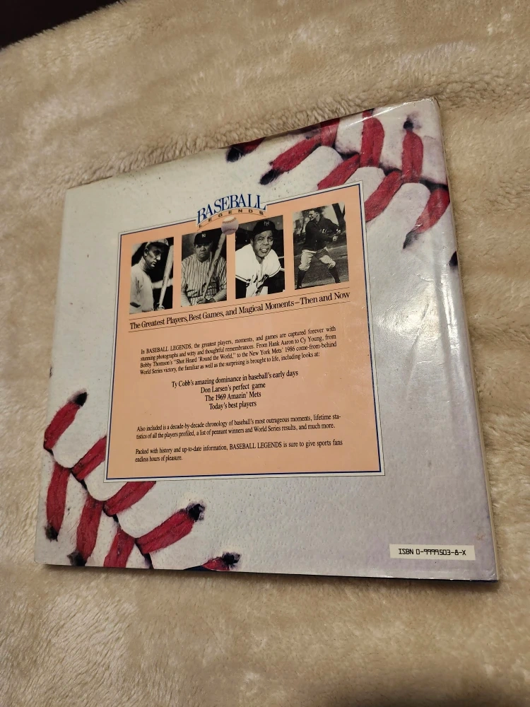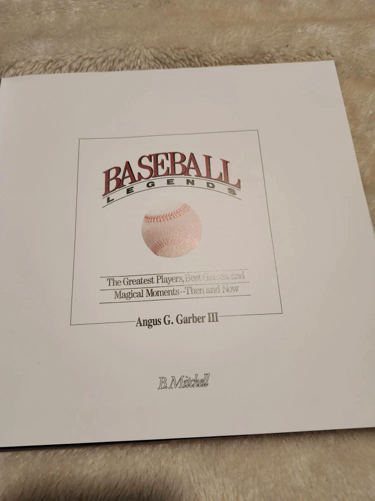 Selling my like new 1989 Baseball Legends book by Angus G. Garber III. It's a fascinating look at the greatest players, best games, and magical moments in baseball history pre-1989. A great read for any baseball fan and in great condition. Collectable book