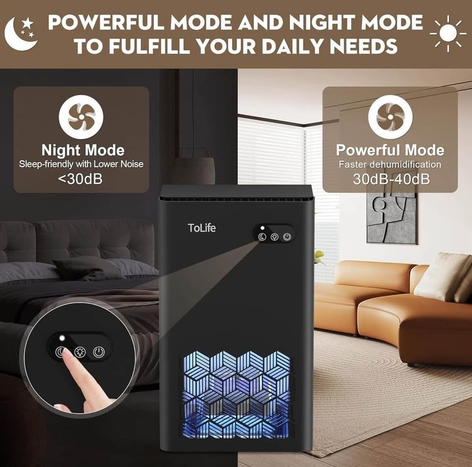 ✅ Adjustable Humidity Settings (e.g., 30%–80%) – maintain ideal indoor air quality