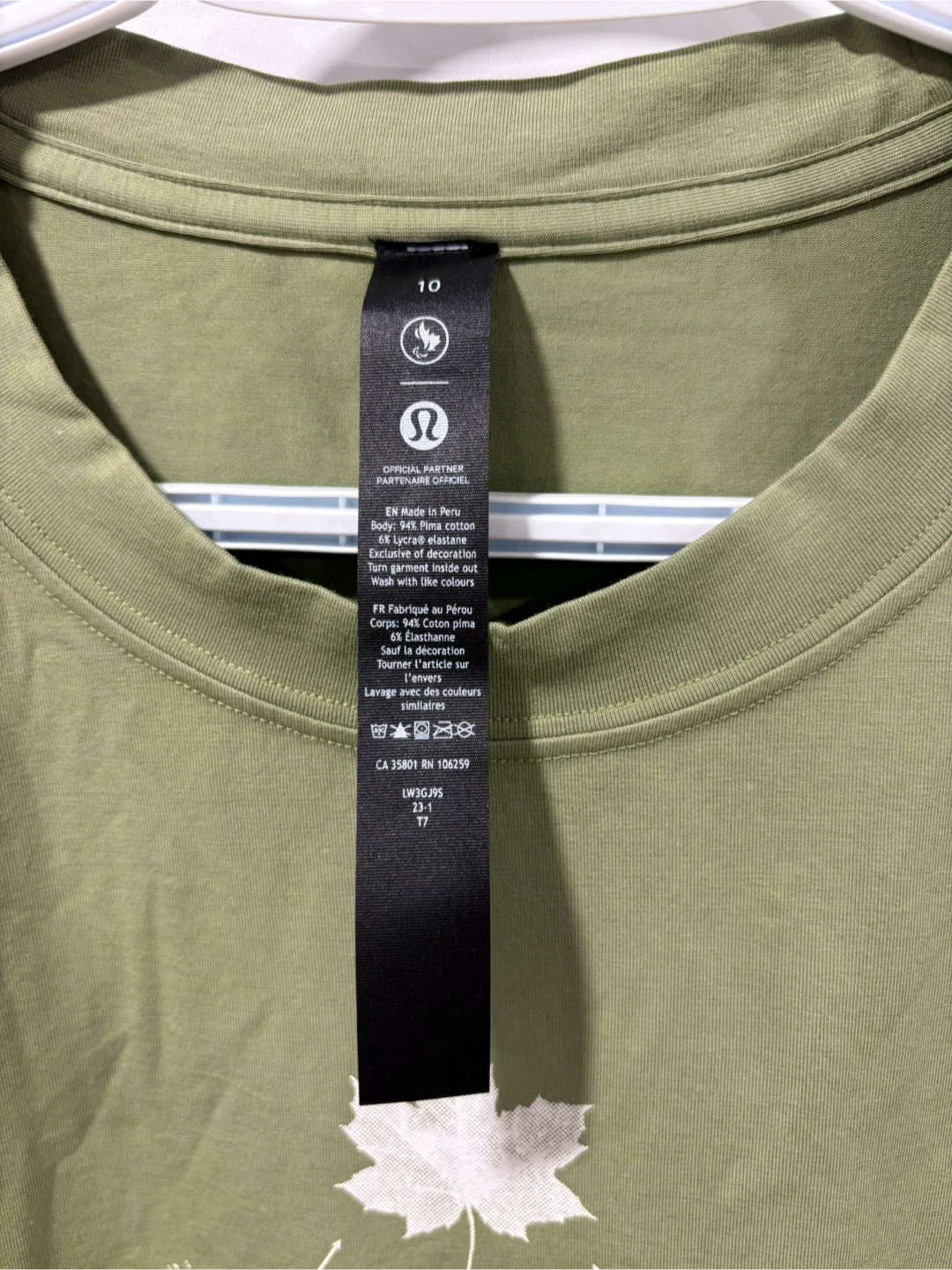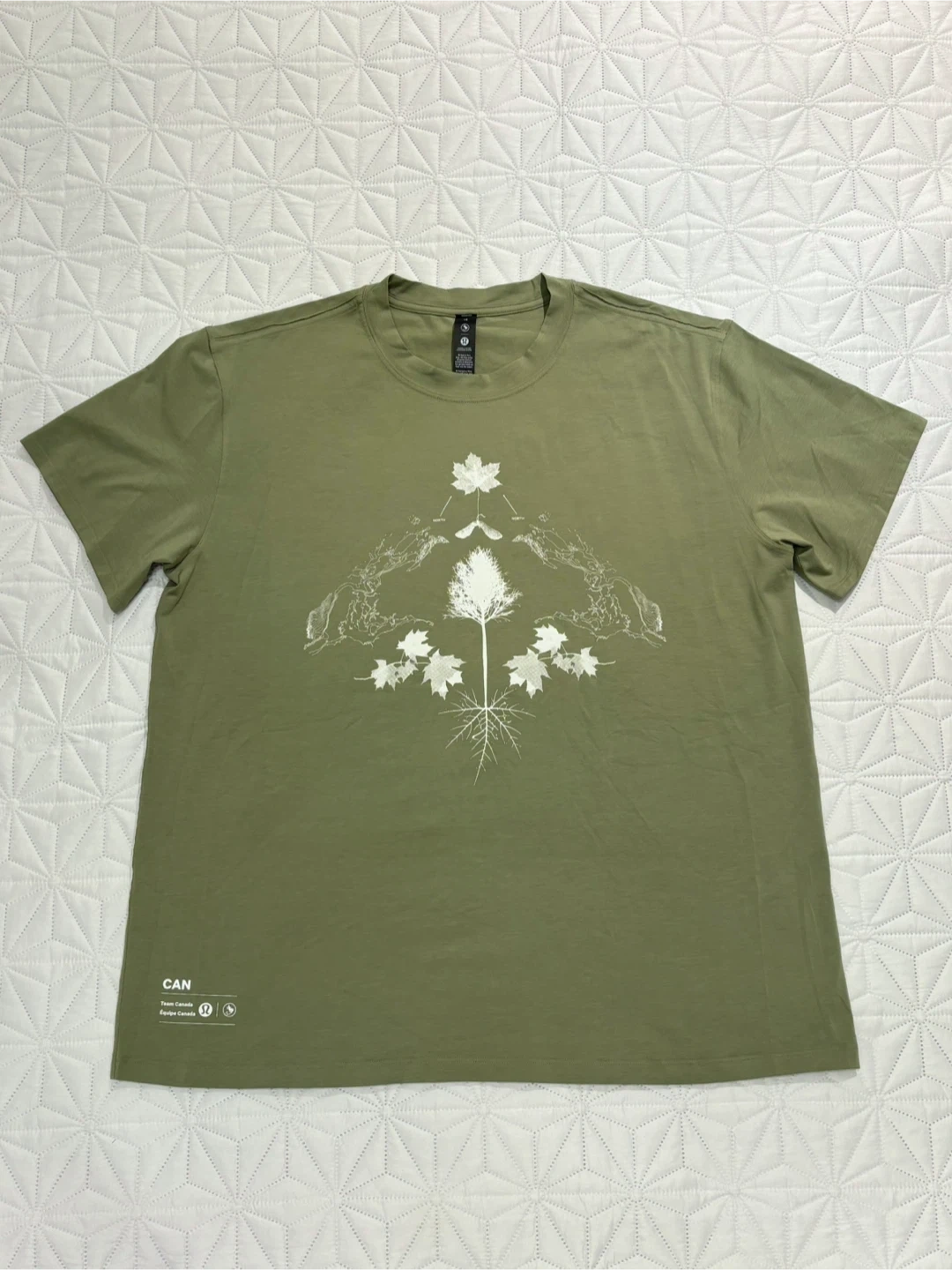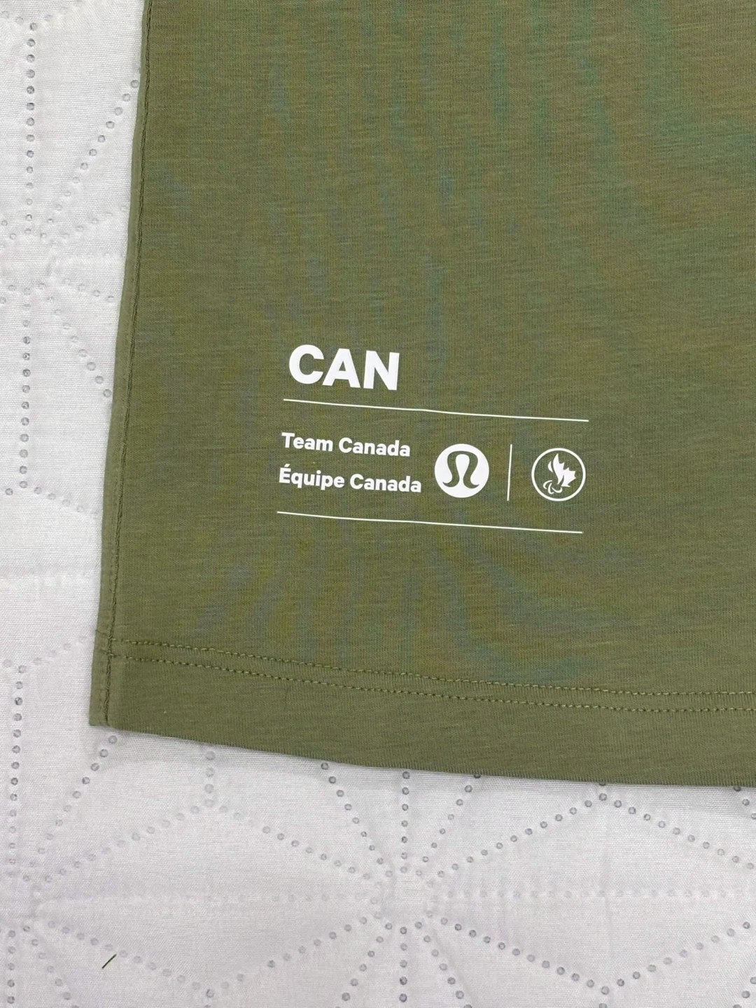 Lululemon Team Canada T shirt in women’s size 10 ( women’s large) in green featuring the Team Canada logo.