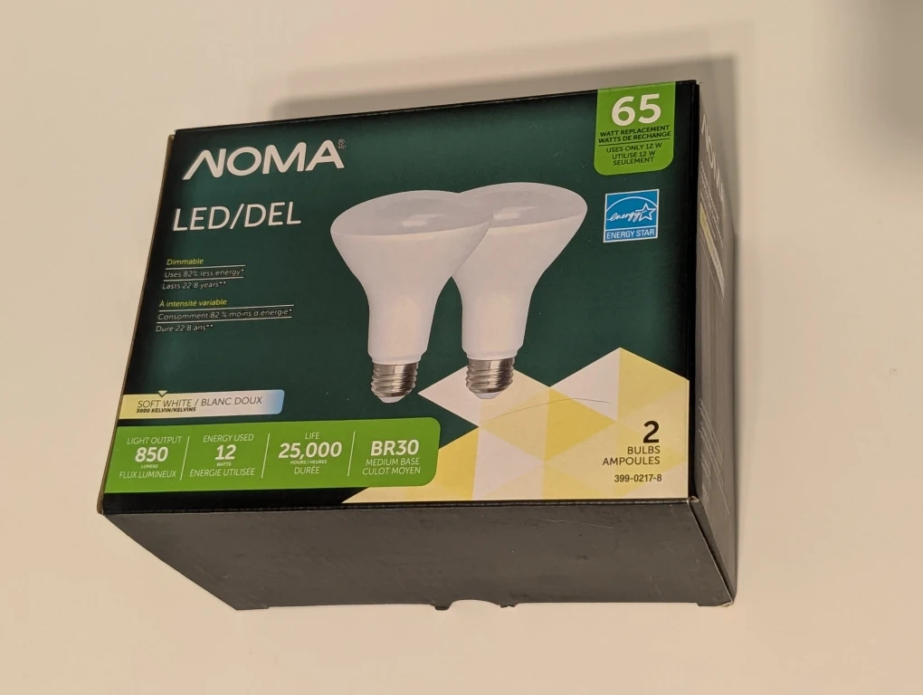 Selling a brand new, in-box set of two Noma LED BR30 light bulbs!