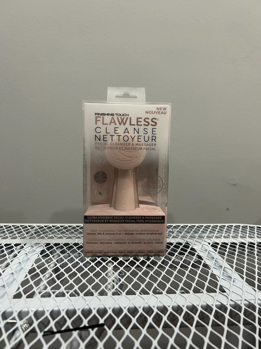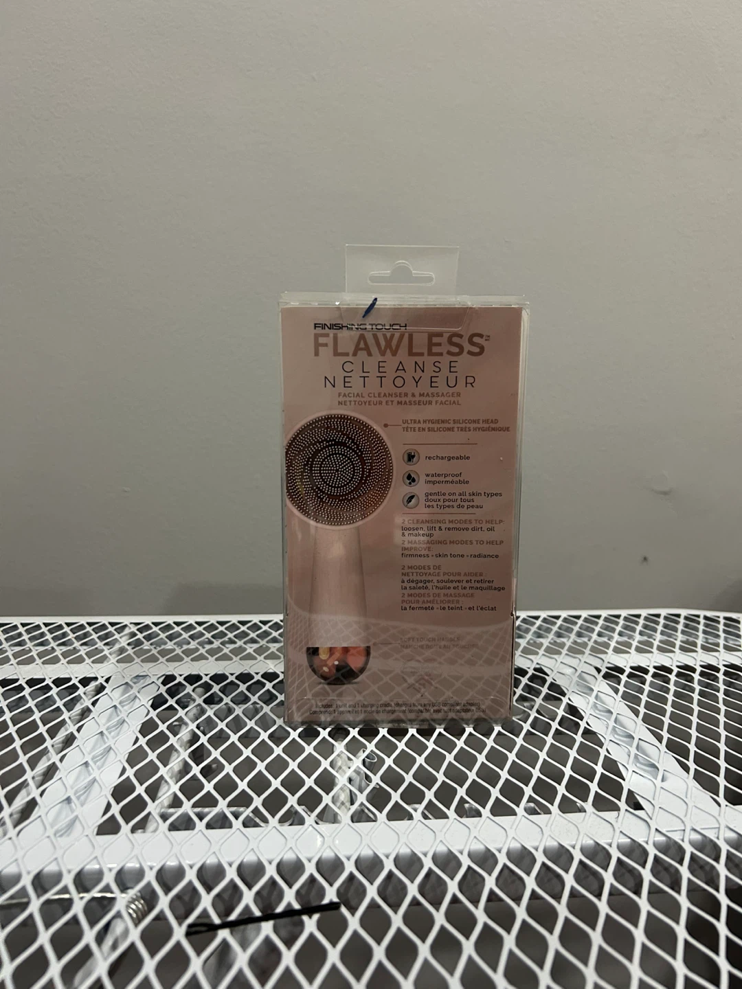 Pink facial cleansing brush brand new in box. Comes with tool and charging port. Designed for gentle makeup removal, cleansing, and massage. Brand is Flawless Beauty. 4 modes, rechargeable, waterproof, silicone head.