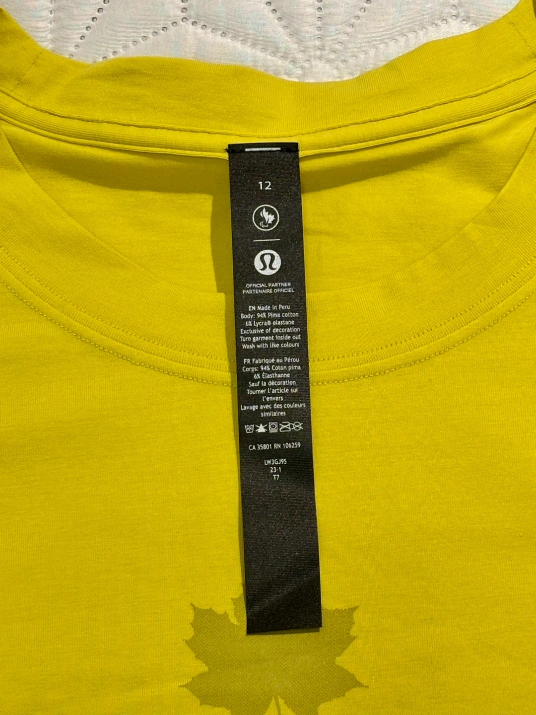 Lululemon shirt size 12 Team Canada in Yellow size XL