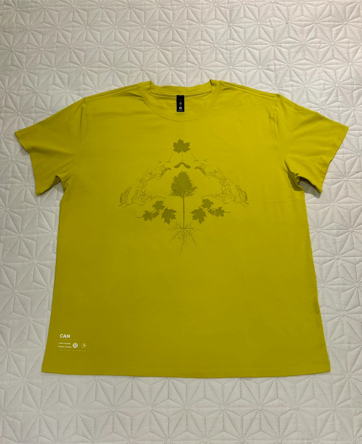 Lululemon Team Canada T shirt in womenâs size 12 ( womenâs XL ) in yellow featuring the Team Canada logo.