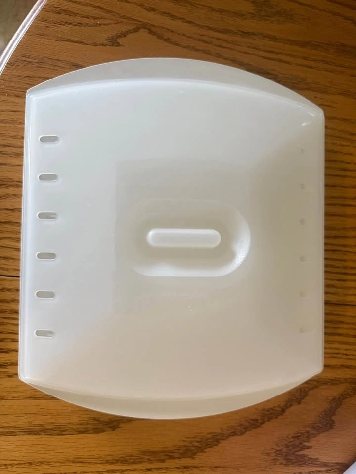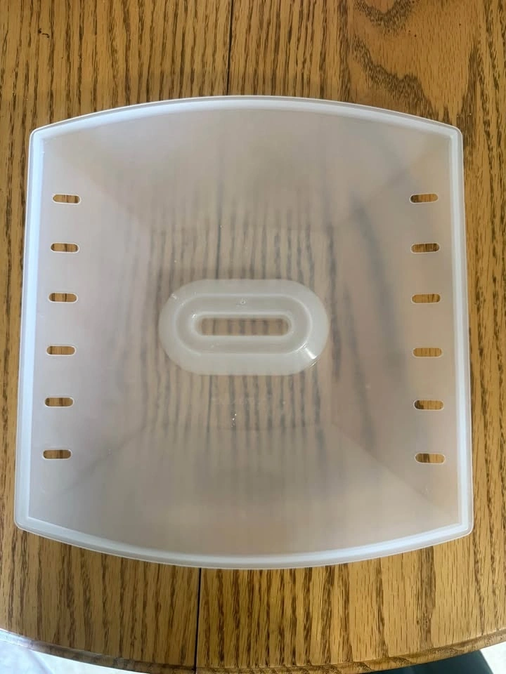 -Features a vented cover to prevent grease splatter and a recessed handle for easy removal. Fits microwave turntables with a minimum diameter of 12.5 inches, dishwasher safe for easy cleanup.