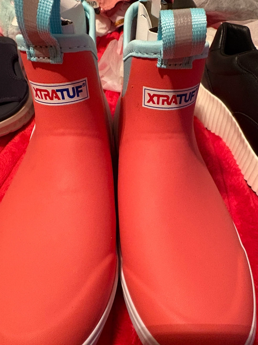 These XTRATUF Salmon Sisters Ankle Deck Boots are perfect for keeping your feet dry and comfortable. They feature the XTRATUF logo and a stylish design. Great for everyday wear or outdoor activities!