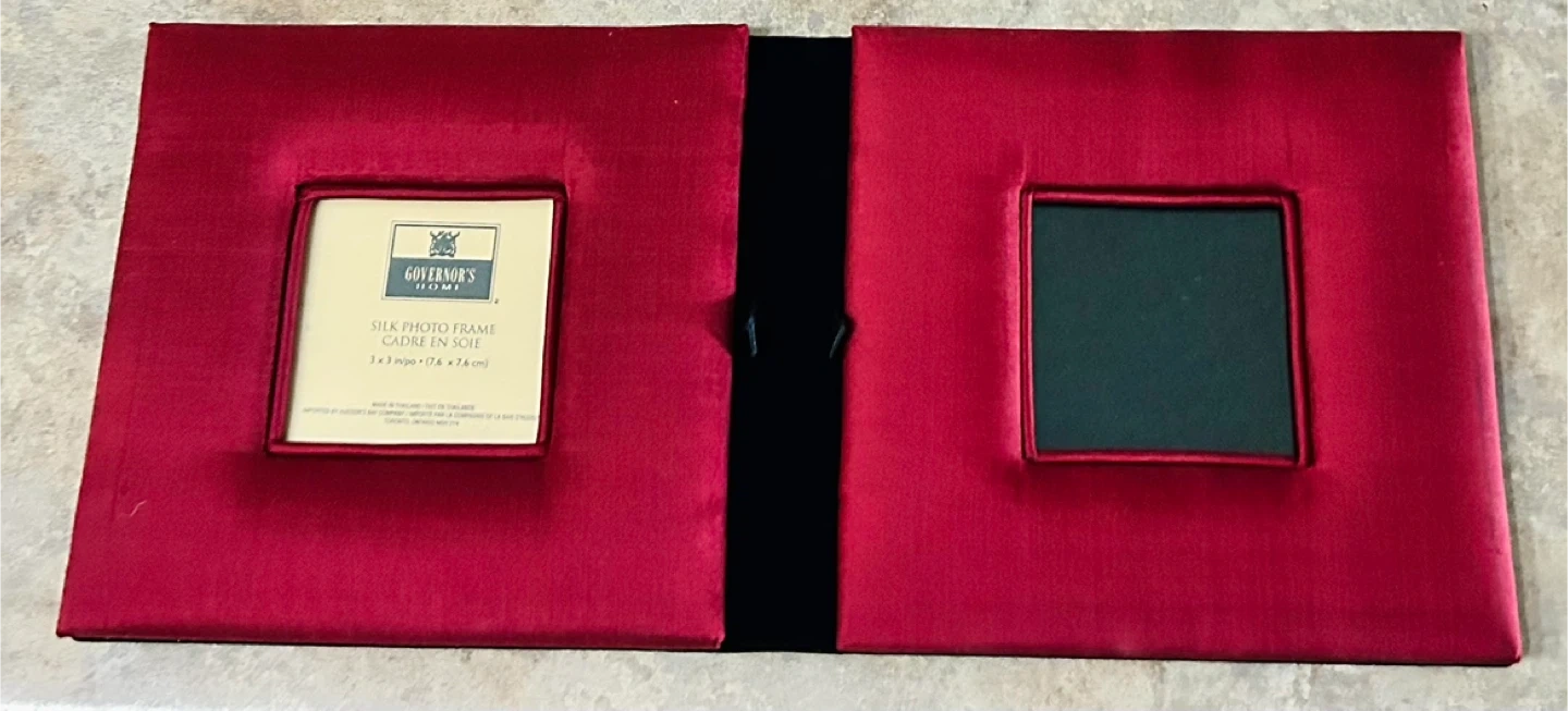 This is a Governor's Home silk photo frame. The frame size is 3 x 3 in