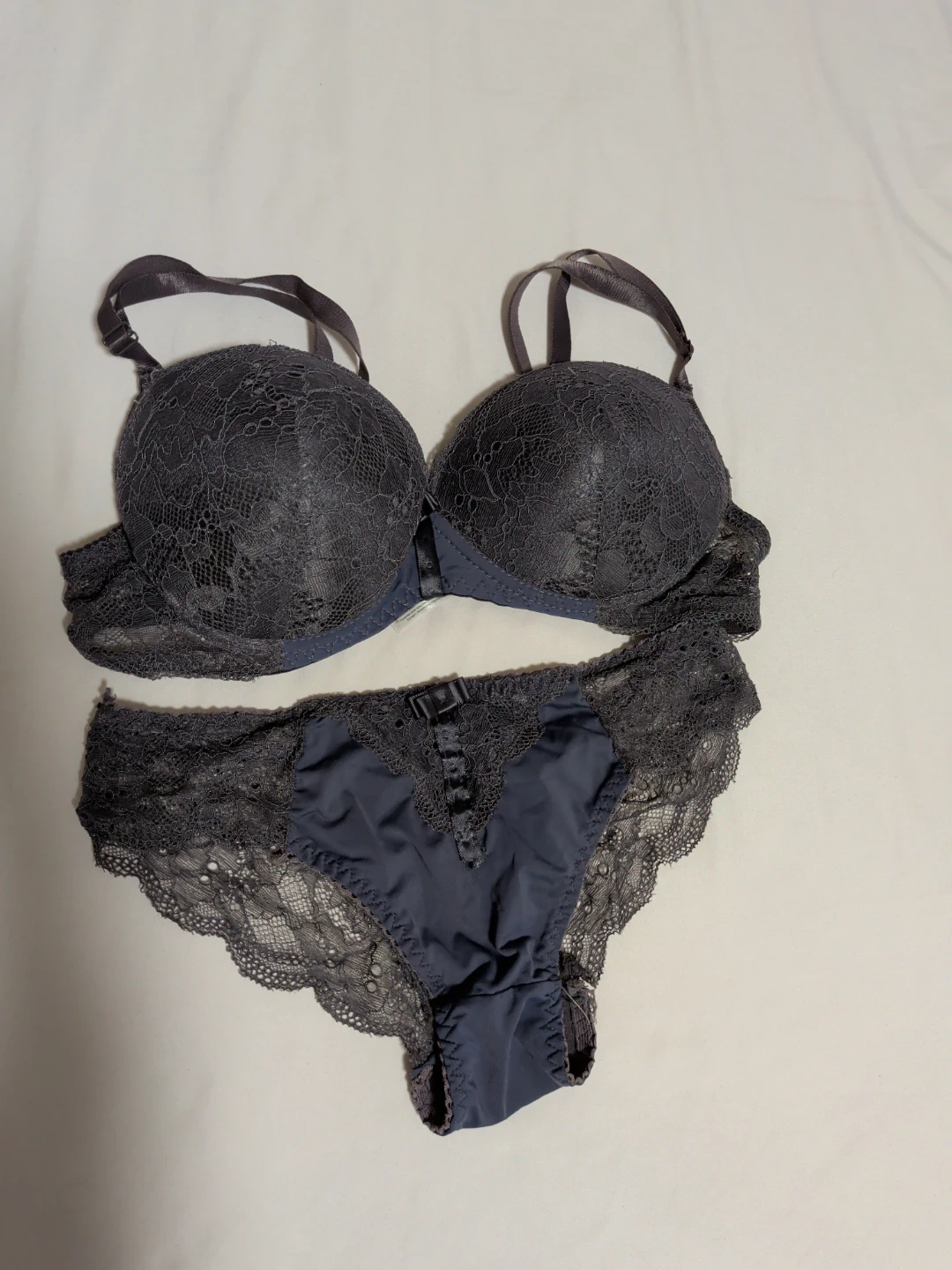 Selling a cute grey lace lingerie set. It's in great condition and ready for a new owner!
