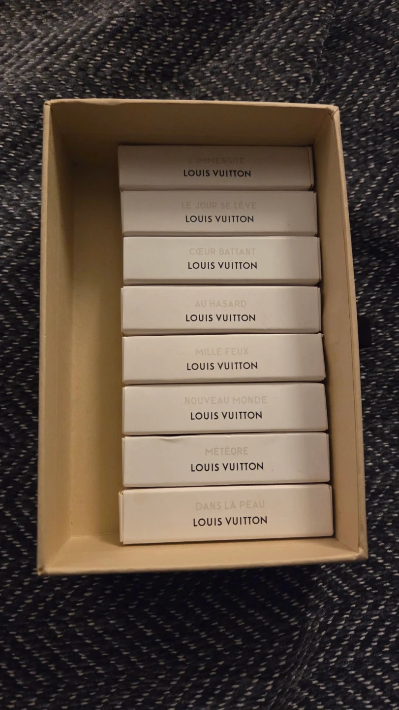 Buy & SellLouis Vuitton Perfum Samples (8)Louis Vuitton Perfum Samples (8)$50BNIB. 8 vials of Louis Vuitton perfum samples. Scents can be seen in pictures. Comes with LV box. Pick up King-Spadina. ConditionNewWHERE TO MEETking blue jaysView MapSELLERverifiedleEntertainment District88979 reviews2 chats·1 favorites·106 viewsSEND CHAT TO SELLERHi le! I’m interested in your listing.Hi le! I’m interested in your listing.Get the Karrot app to chatSign In to chat