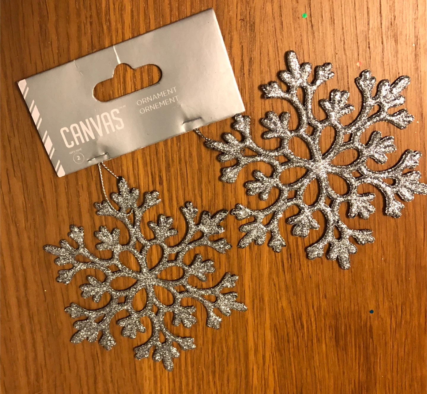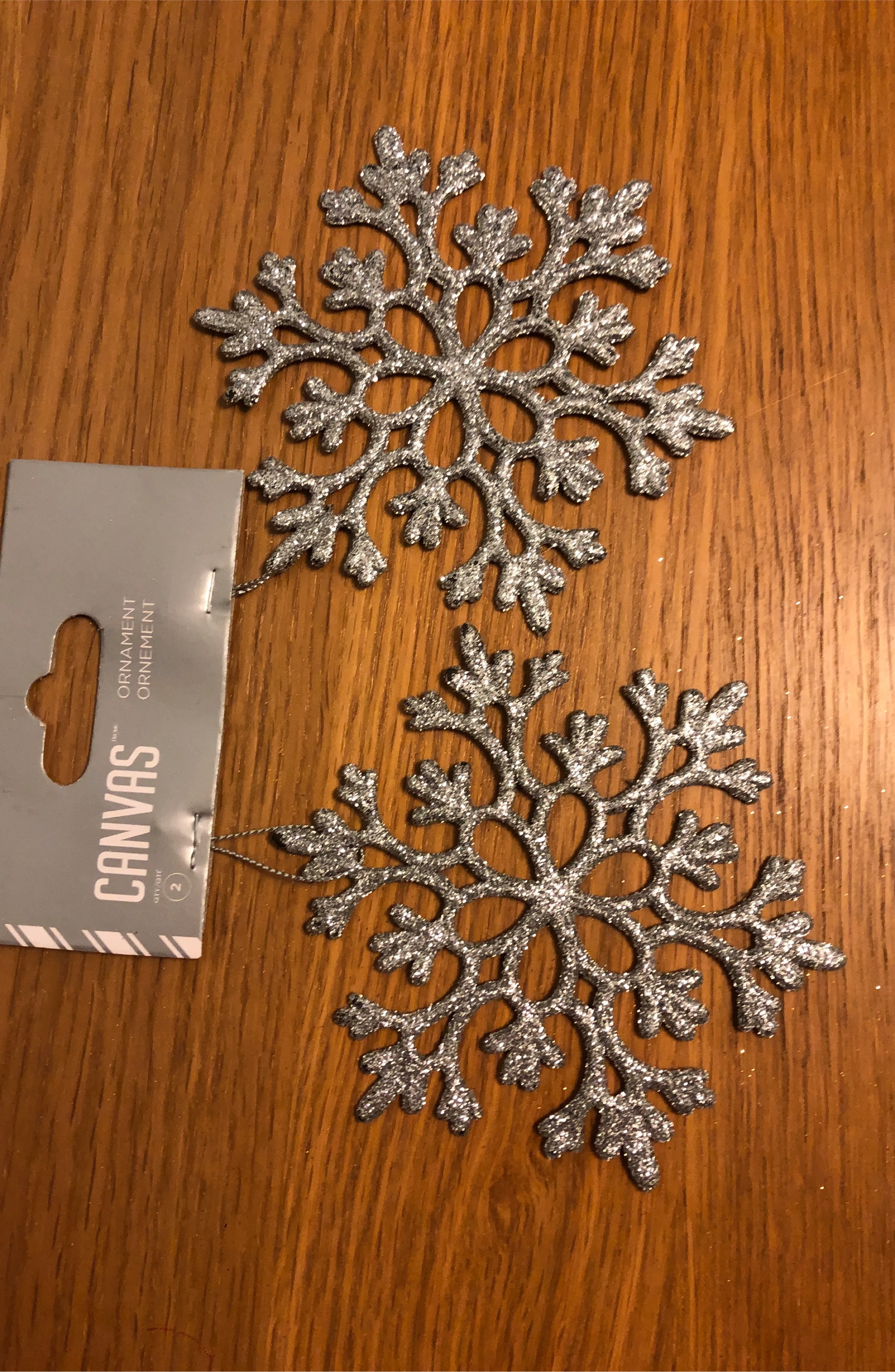 Selling a set of two silver snowflake ornaments from Canvas. They're perfect for adding a touch of sparkle to your holiday decorations! Happy holidays 🎄