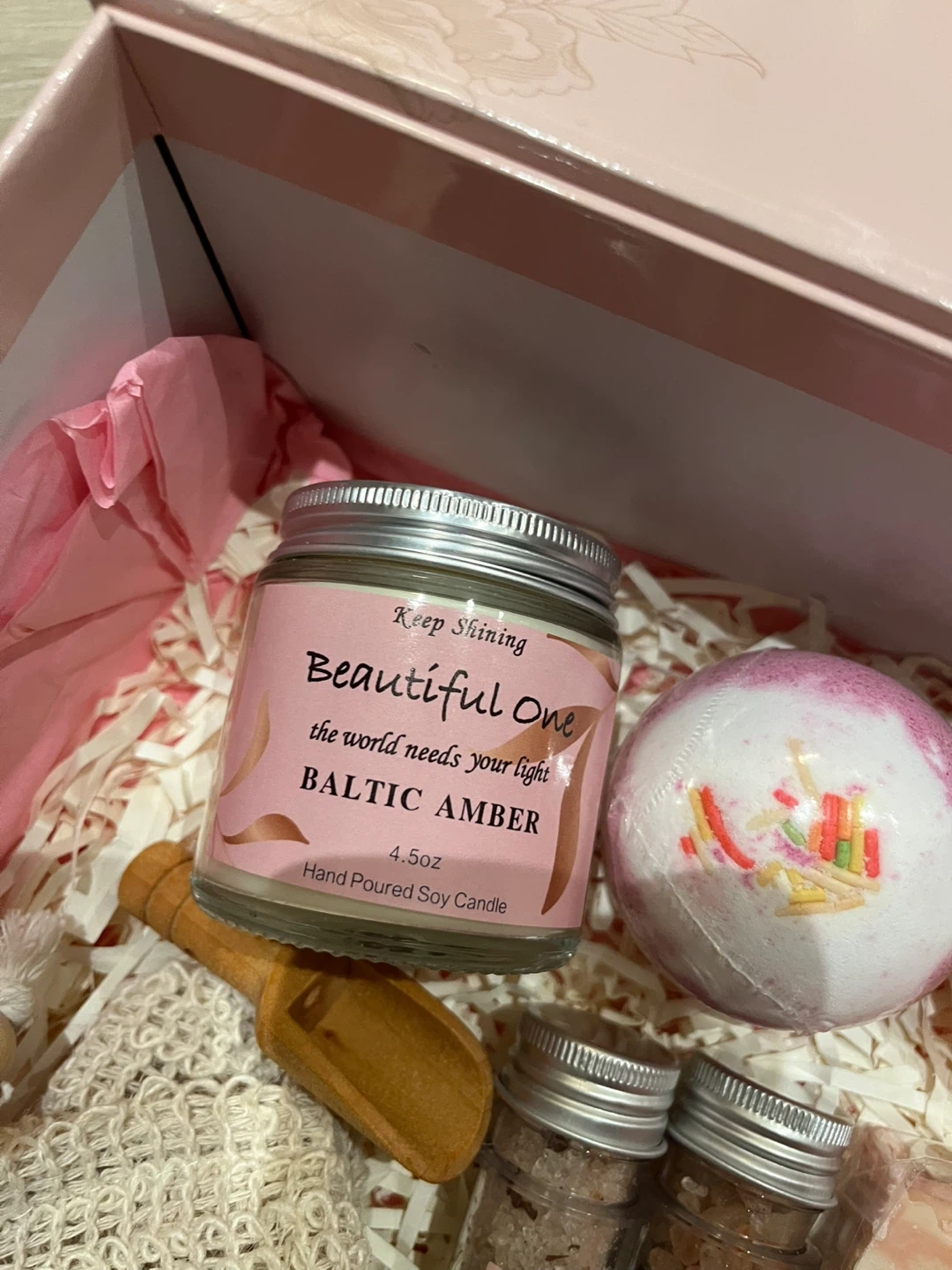 - A 'Beautiful One Baltic Amber' hand-poured soy candle (4.5oz)