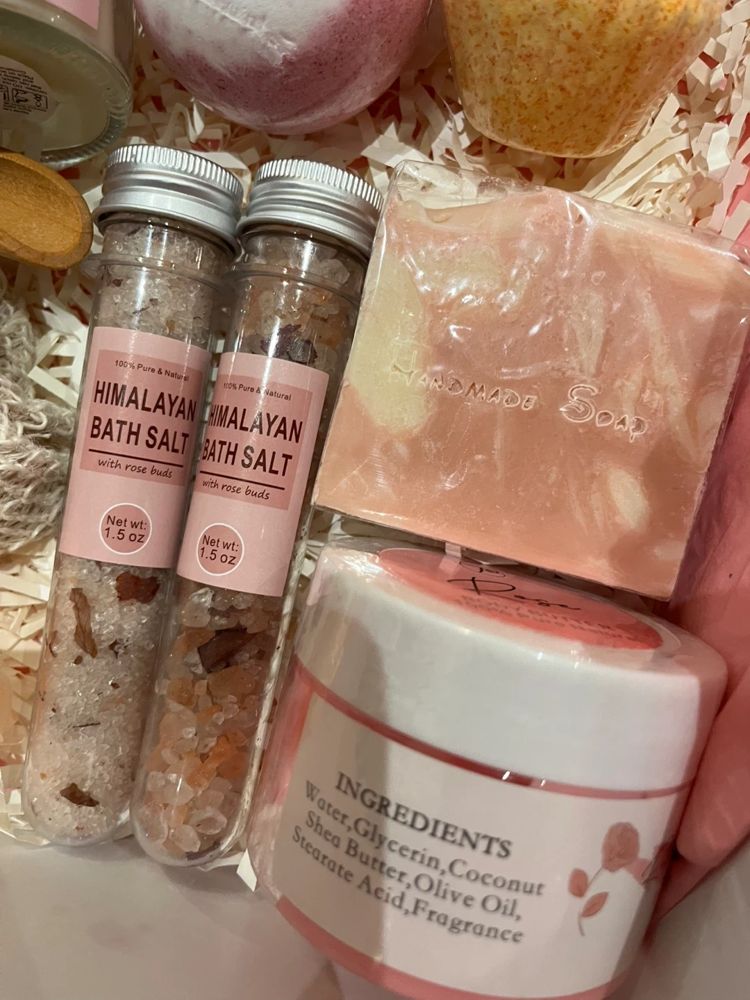 - Himalayan bath salts with rose buds (1.5oz each)