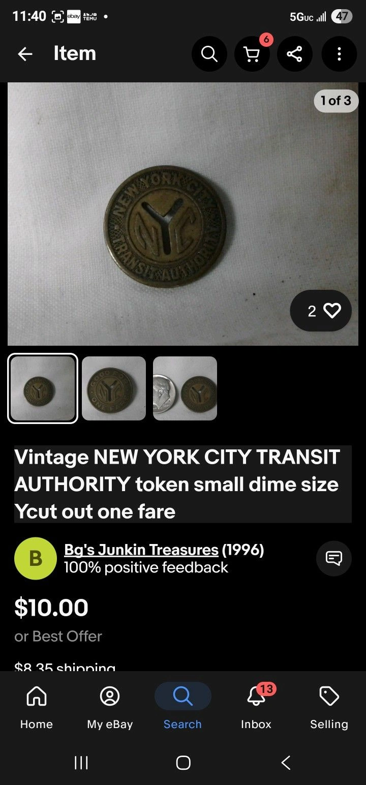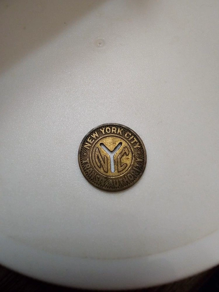 Selling two vintage New York City Transit Authority token. It's a small, dime-sized token with a Y-cut for one fare. $10 each
