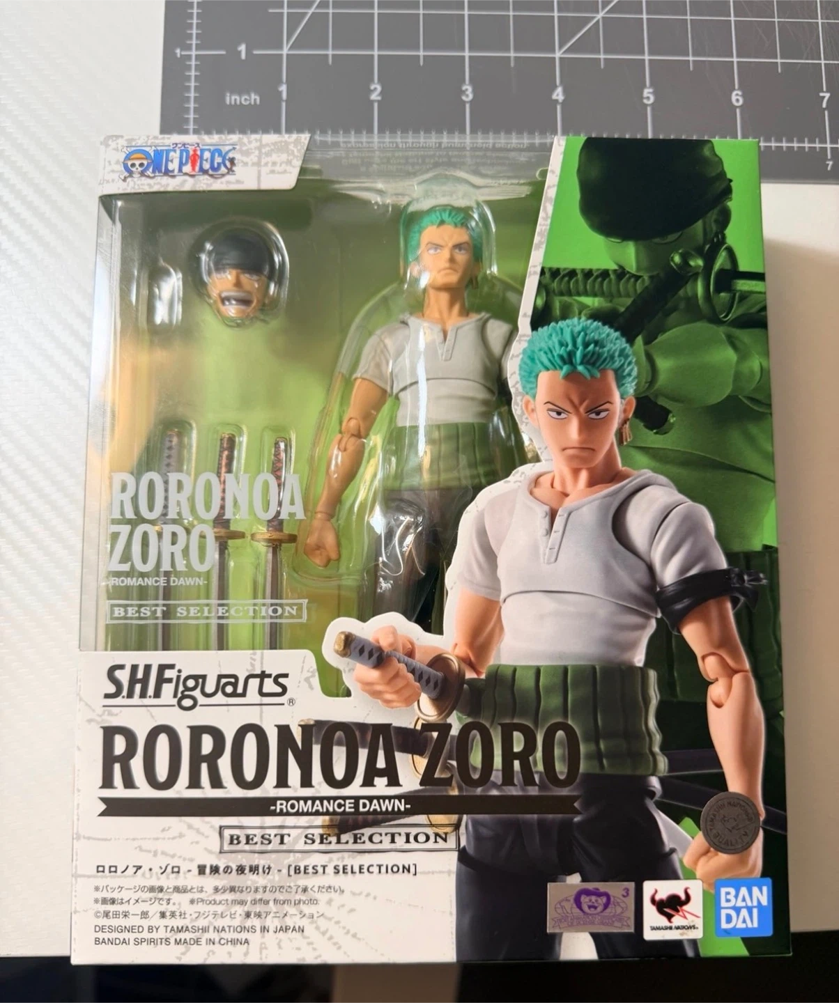 Selling a brand new, in box SHFiguarts Roronoa Zoro action figure! It's from the Romance Dawn Best Selection series. The box includes the figure and accessories. Great for any One Piece fan!