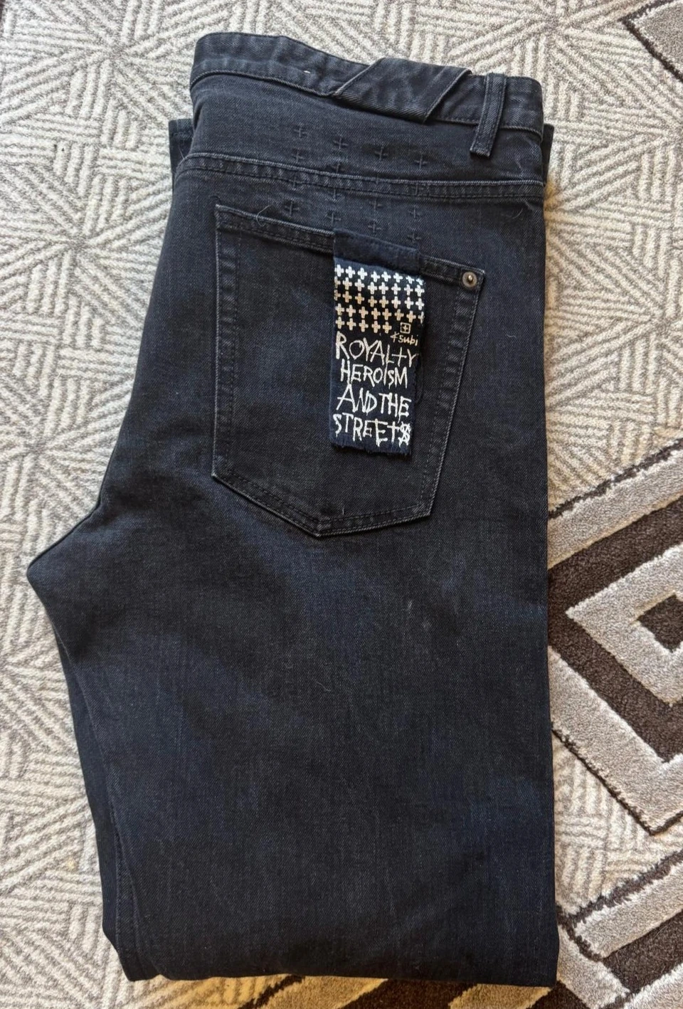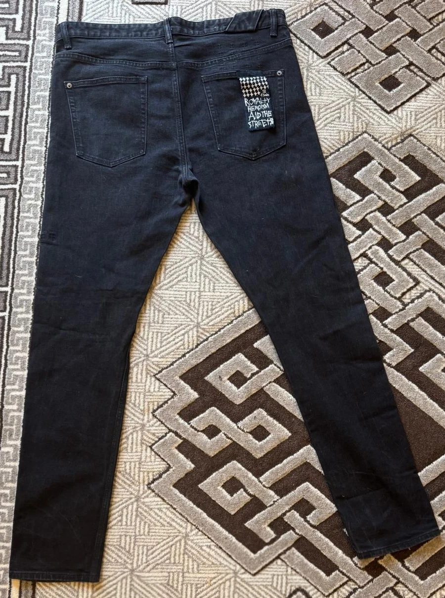 Selling a pair of Ksubi black jeans. They are in great condition and have a cool design on the back pocket!