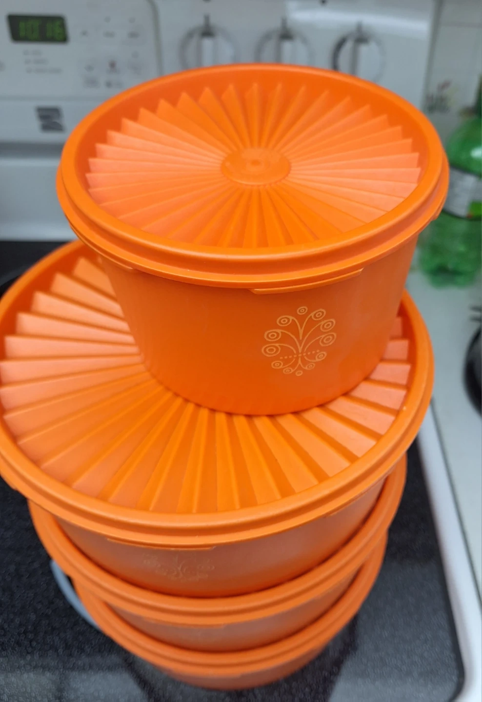 Four Vintage Tupperware stacking canisters. Pickup Scarborough Pharmacy and Ellesmere area