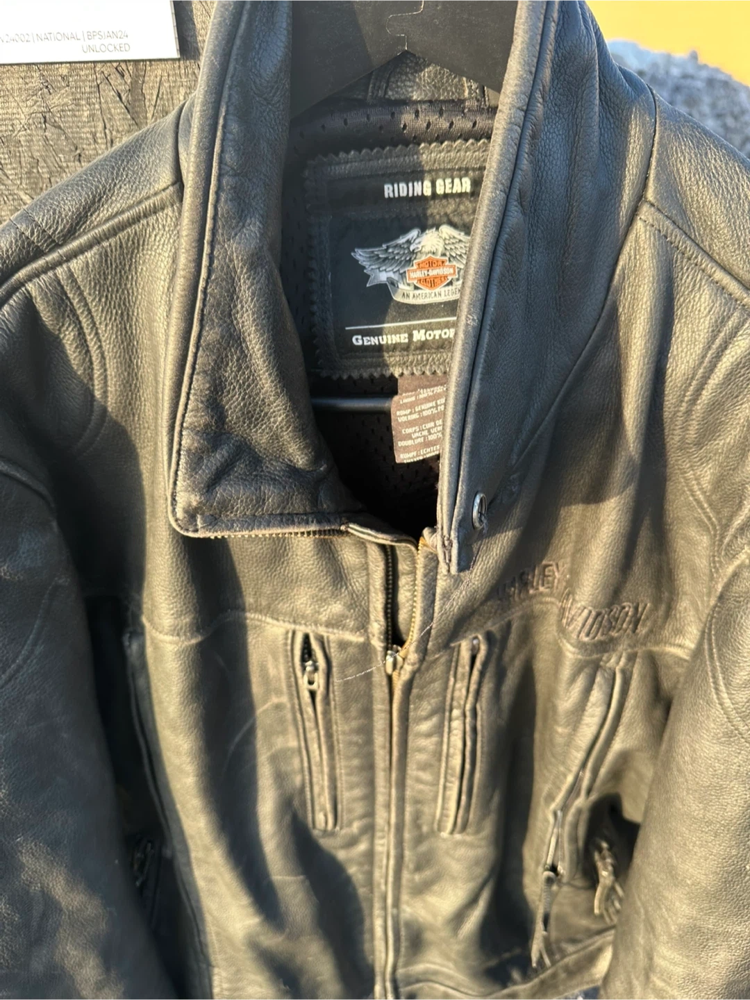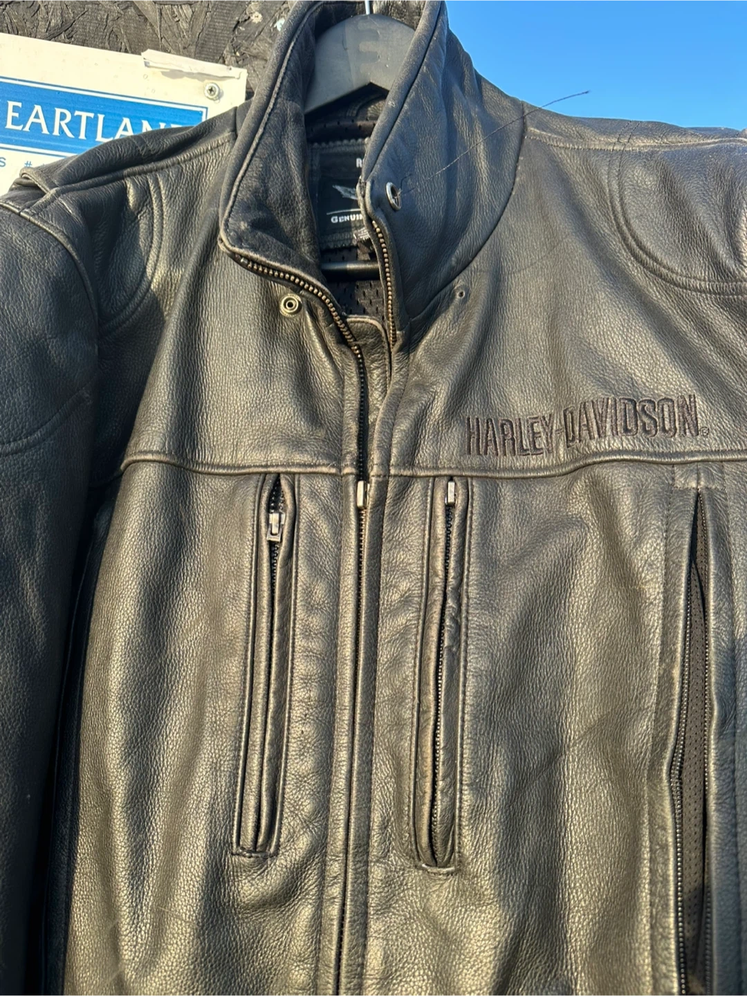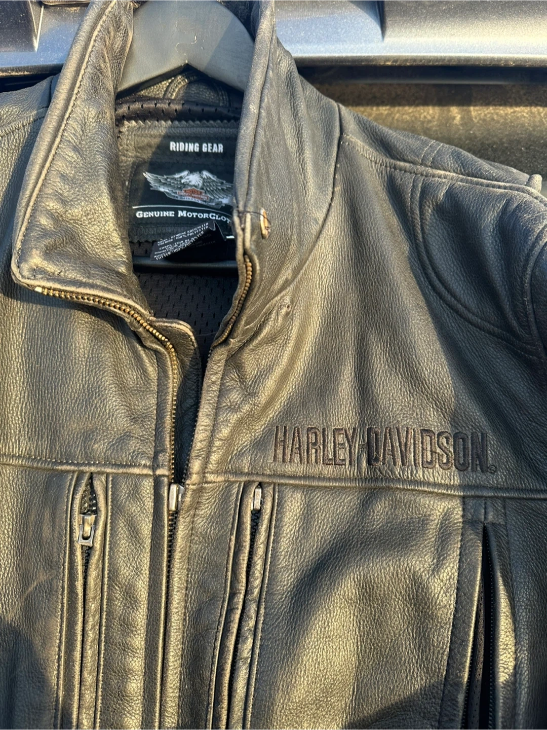 Selling a Harley Davidson leather motorcycle jacket. It's in good condition and ready for the road!