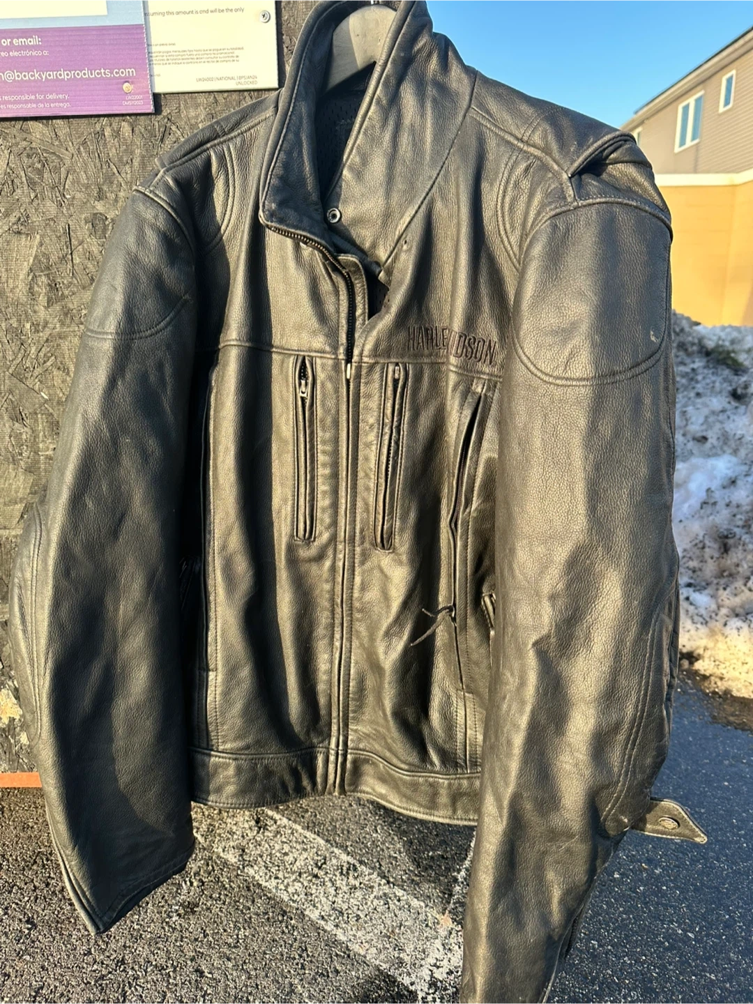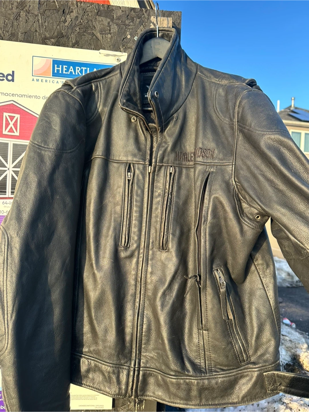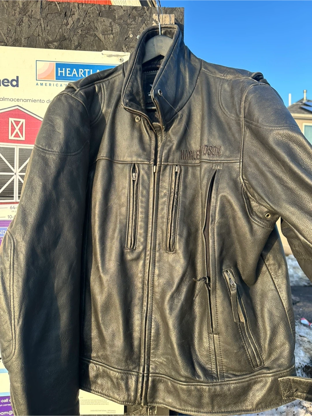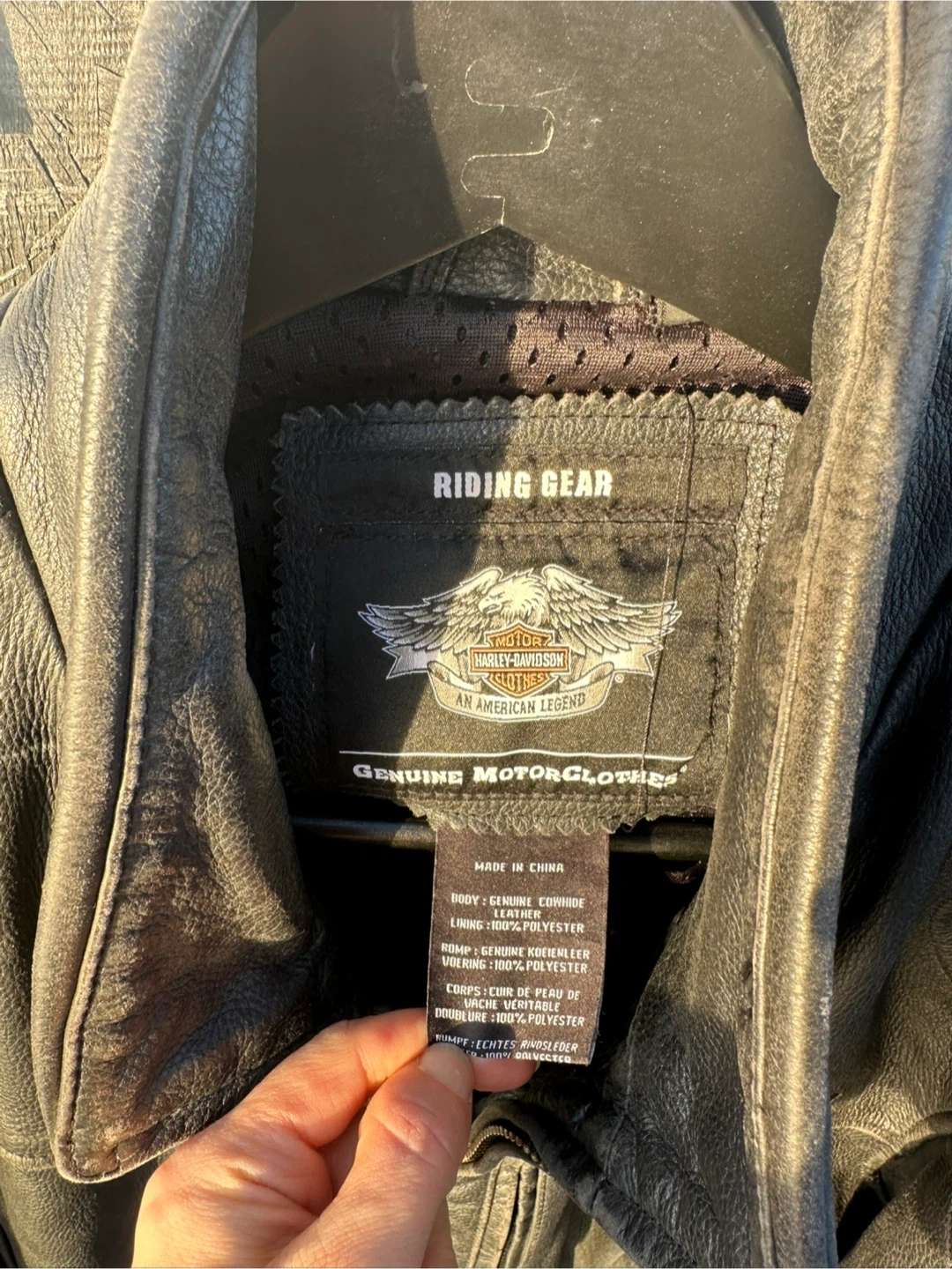 Selling a Harley Davidson leather motorcycle jacket. It's in good condition and ready for the road!