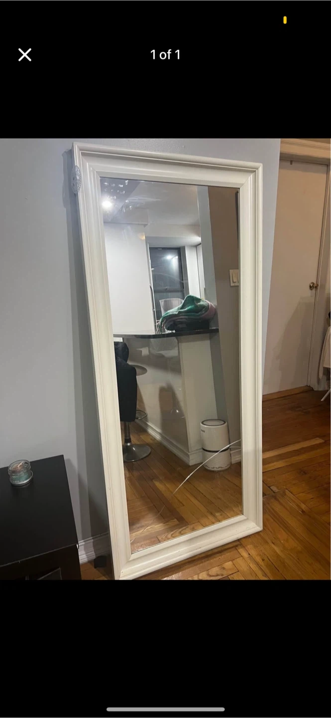 Selling a large white framed wall mirror from IKEA. It's perfect for adding a touch of elegance to any room. Cracked at bottom but is great still