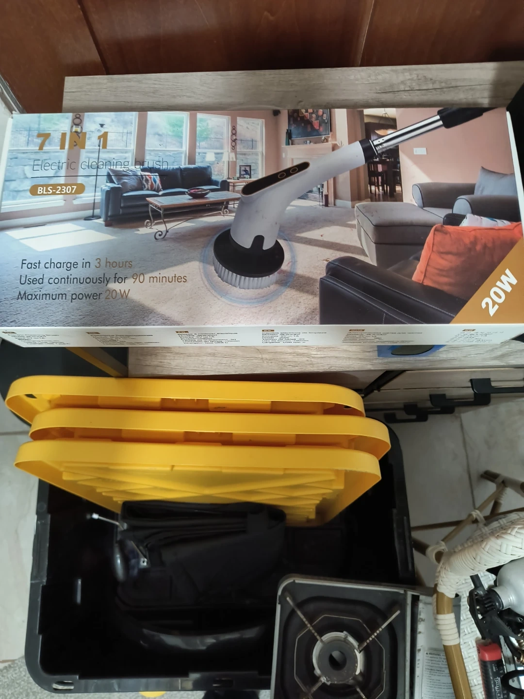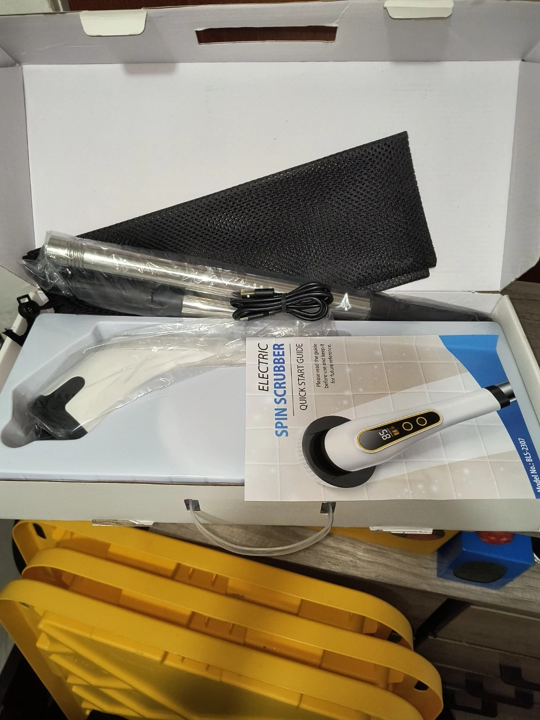 Selling a brand new 7 in 1 electric cleaning brush, still in its original box! It's perfect for cleaning both your car and your house. The box includes the electric spin scrubber and a quick start guide. It charges fast in 3 hours and can be used continuously for 90 minutes with a maximum power of 20W