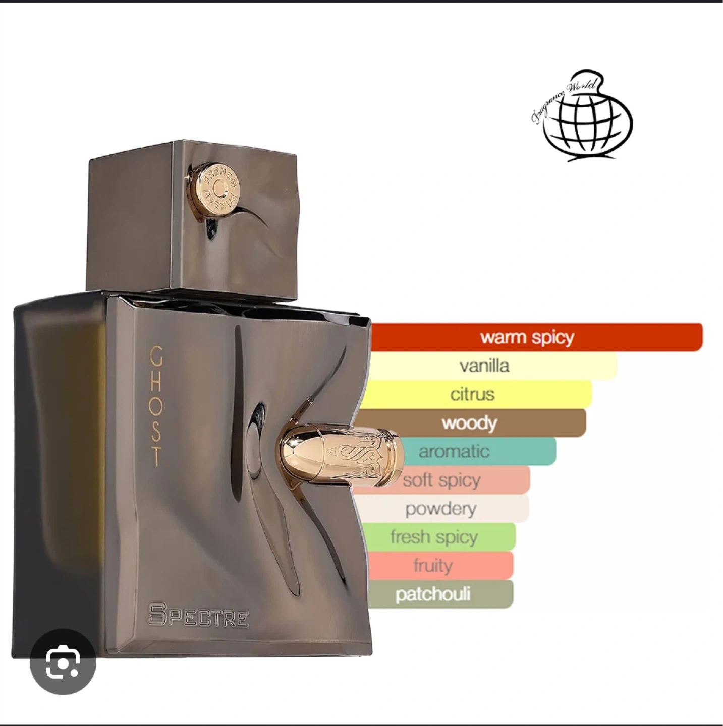 Selling a Fragrance World Ghost Spectre perfume. It comes in its original box. This Eau de Parfum is 80ml. It has a warm and spicy scent! Perfect for the winter season.