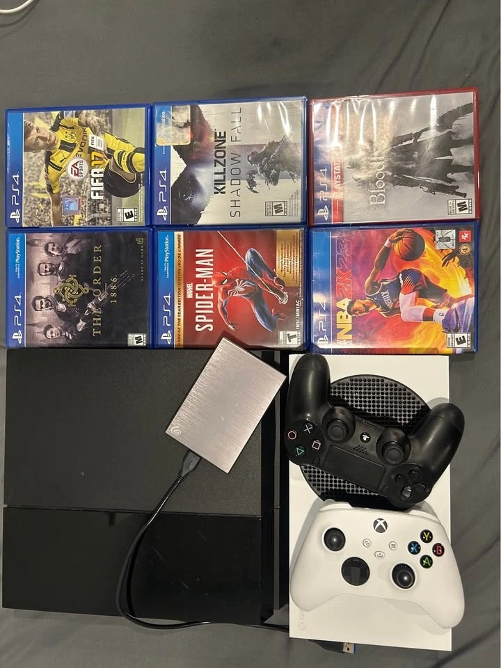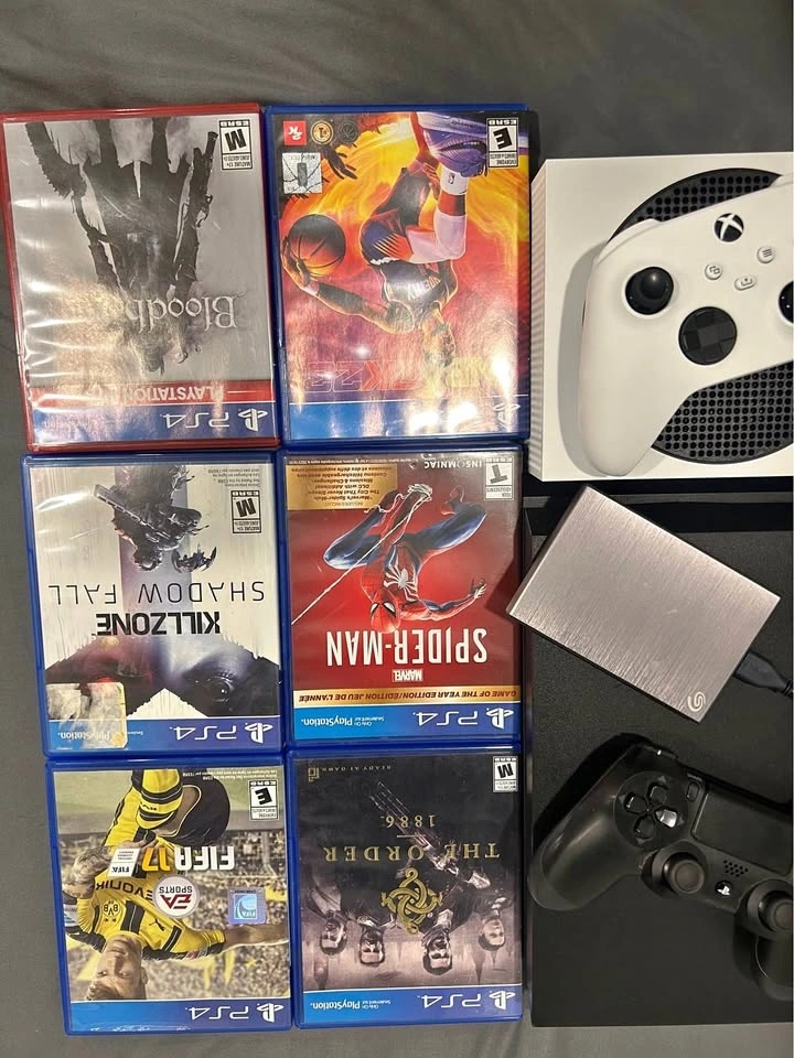 Selling my PS4 and Xbox Series S bundle, both in great working condition. Perfect for someone who wants a full gaming setup with lots of storage and multiple games included.