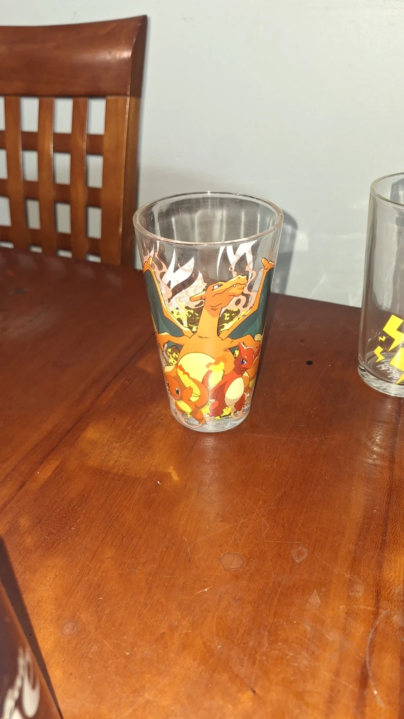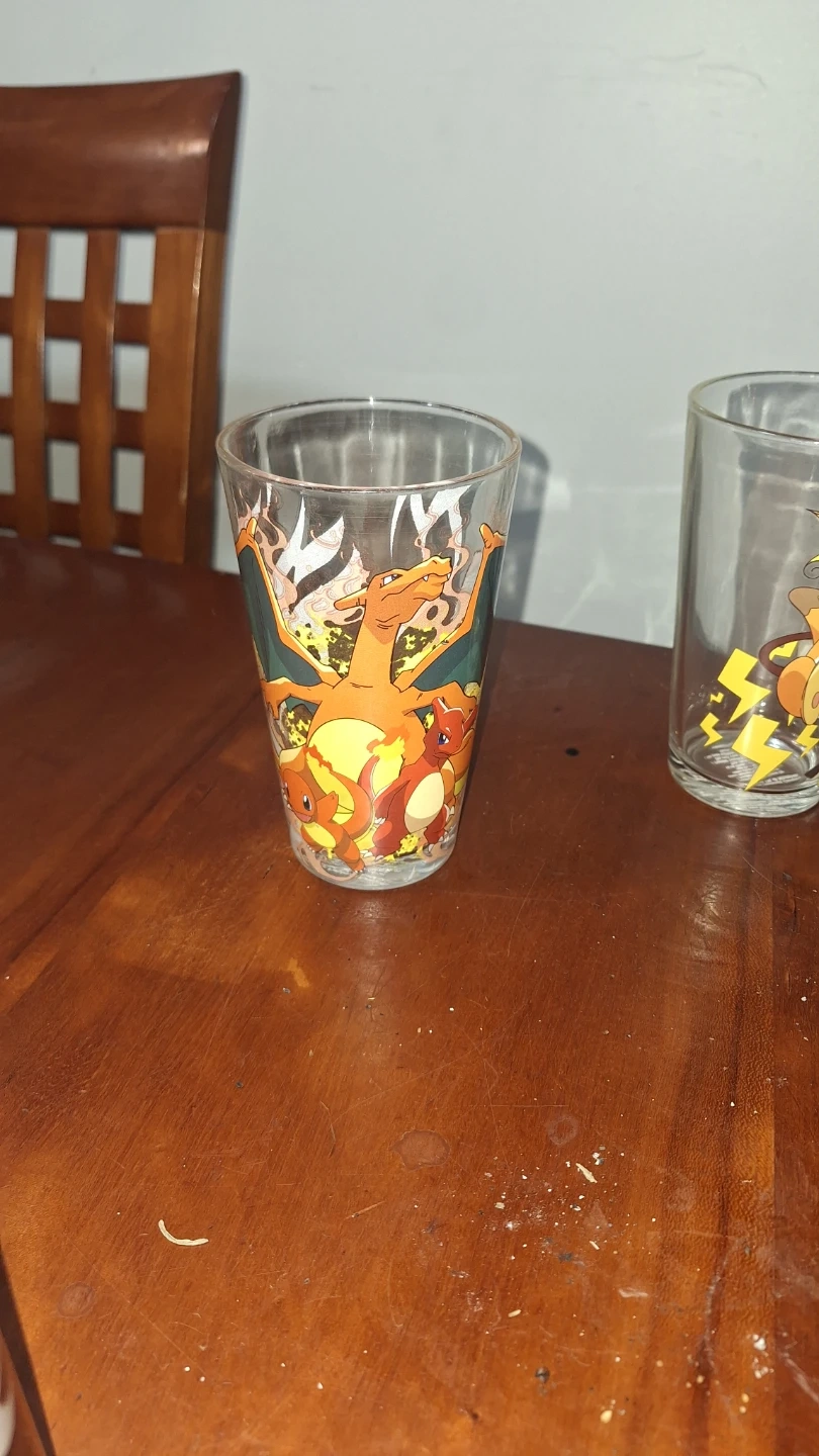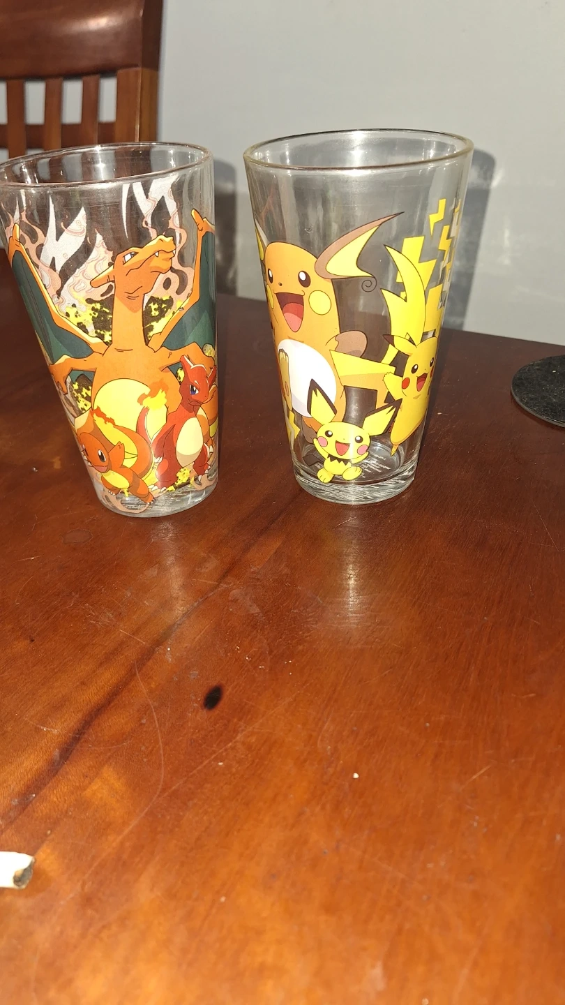 Selling two Pokemon Company glass cups. One has Charizard and the other has Pikachu. They are in good condition and are from 2017. Hand wash and top rack only