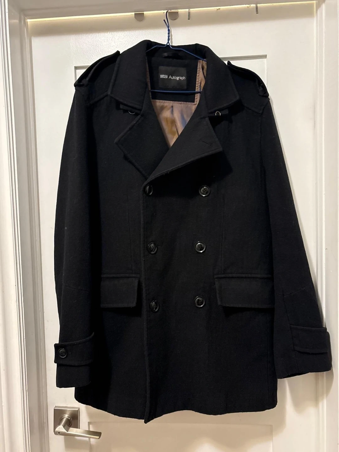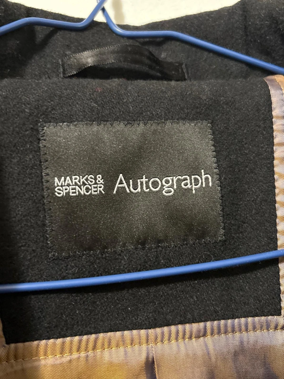 Selling a stylish black wool coat from Marks & Spencer's Autograph line! It's in great condition and perfect for keeping warm during the colder months