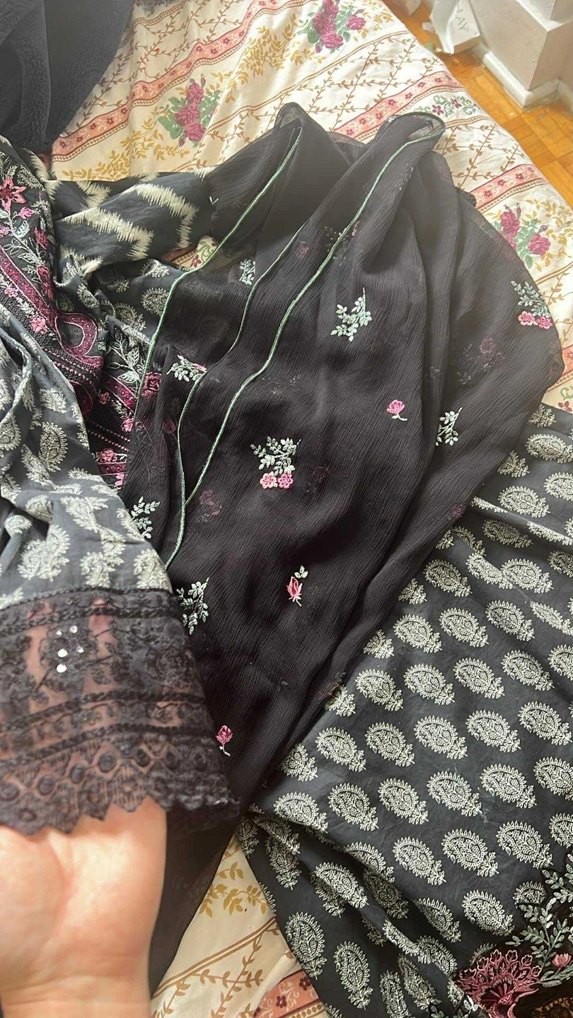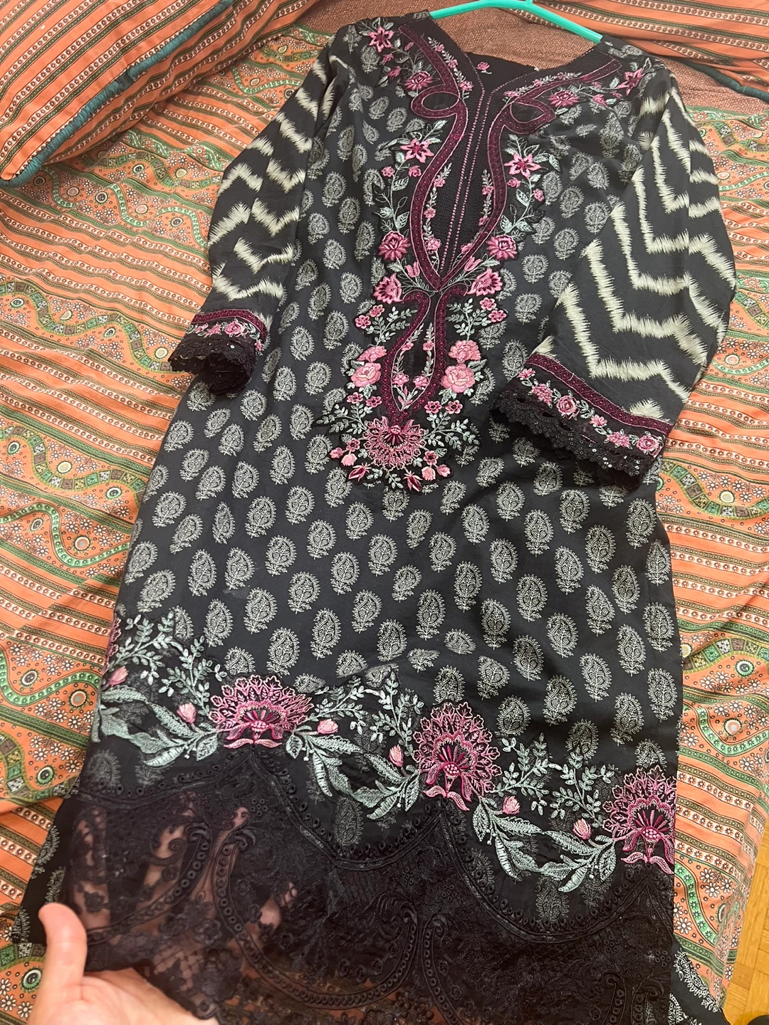 Selling 3 piece beautiful salwar kameez with delicate floral embroidery. The fabric is lightweight and flowy. It's in great condition!