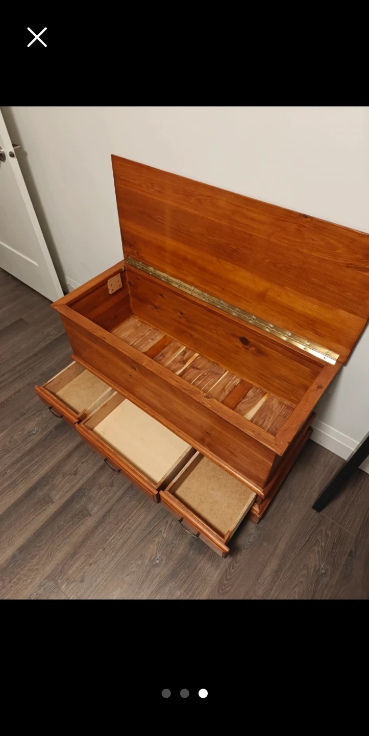Selling a lovely wooden cedar chest! It's in great condition and would be perfect for storing blankets, linens, or other items. It also has three drawers for extra storage.