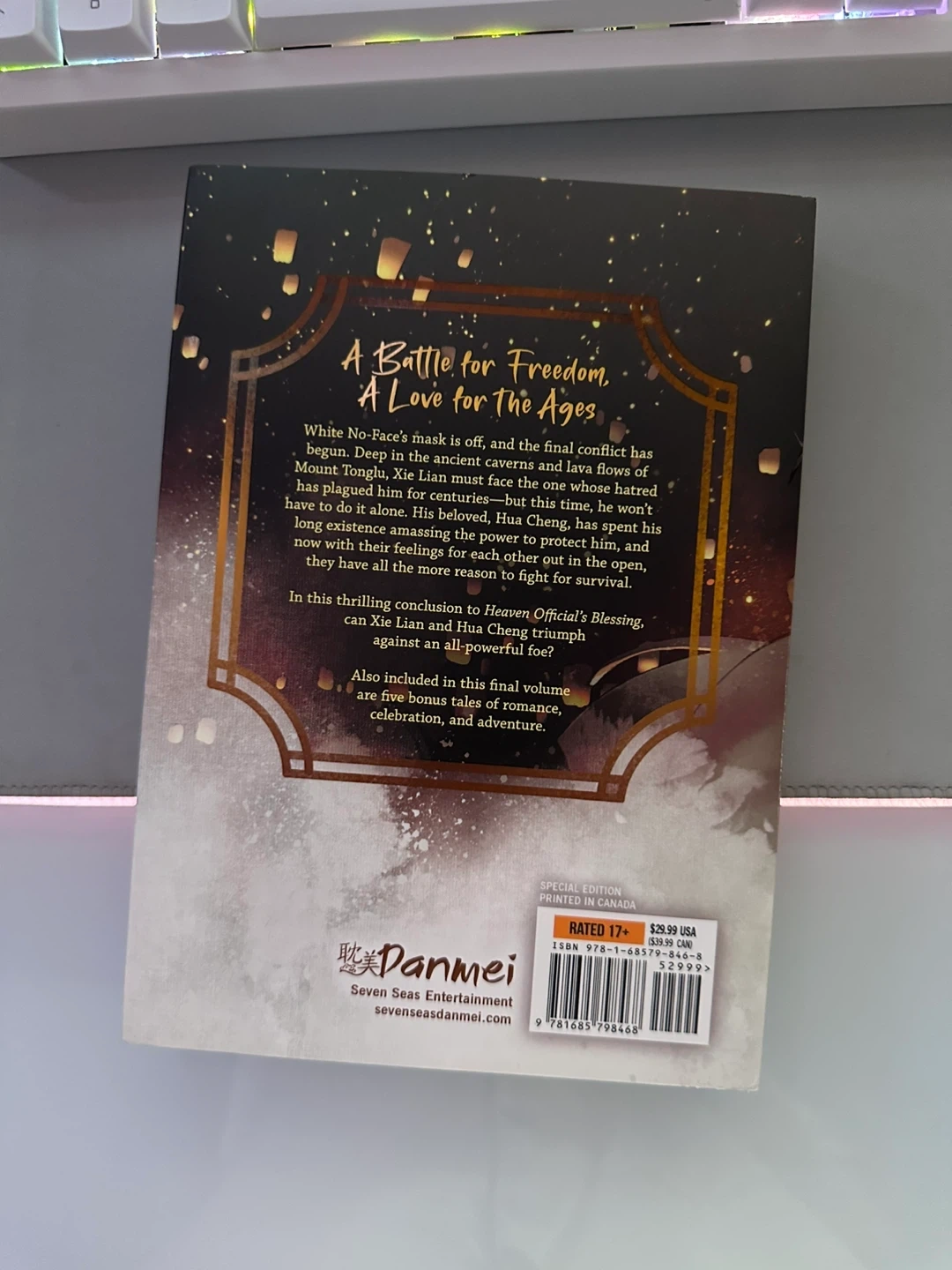 Selling Heaven Official's Blessing, volume 8! It's part of the series by Mo Xiang Tong Xiu. This volume promises a thrilling conclusion to Heaven Official's Blessing, where Xie Lian and Hua Cheng face triumph against an all-powerful foe. Also included in this final volume are five bonus tales of romance, celebration, and adventure