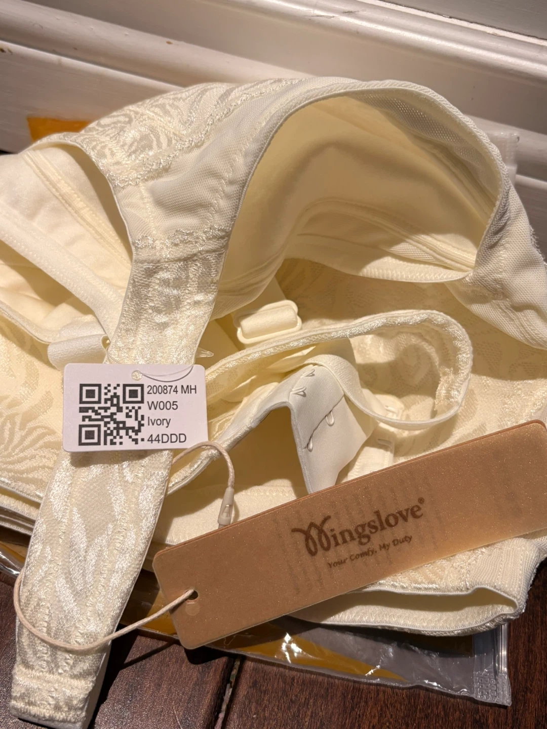 Selling a Wingslove full coverage bra in ivory. It's a size 44DDD and comes in its original packaging!