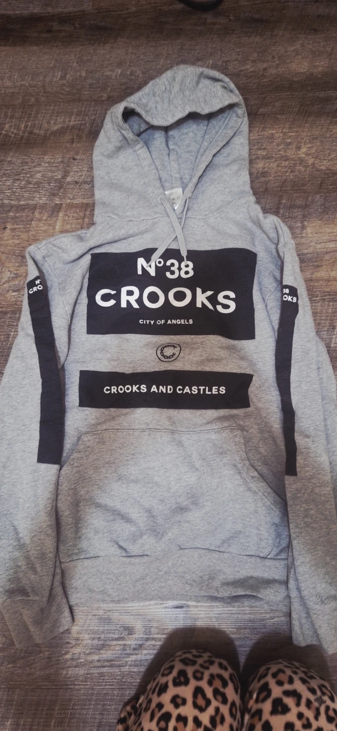 Selling a Crooks & Castles hoodie in size medium! It's a comfy grey colour with the brand's name and "City of Angels" printed on the front. The material is 60% cotton and 40% polyester