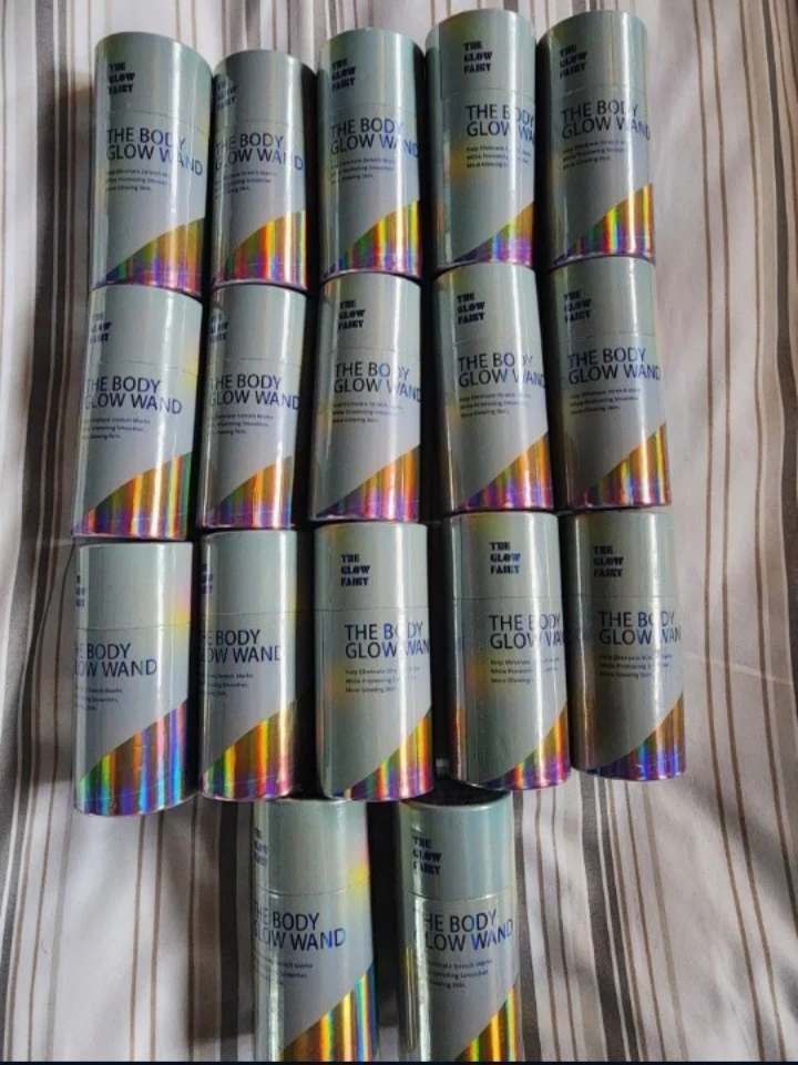 I'm selling The Glow Fairy Body Glow Wand. It helps eliminate stretch marks while promoting smoother, more glowing skin. The expiration date is April 19, 2026! You get all 17 that's pictured. This is an over $500 deal.