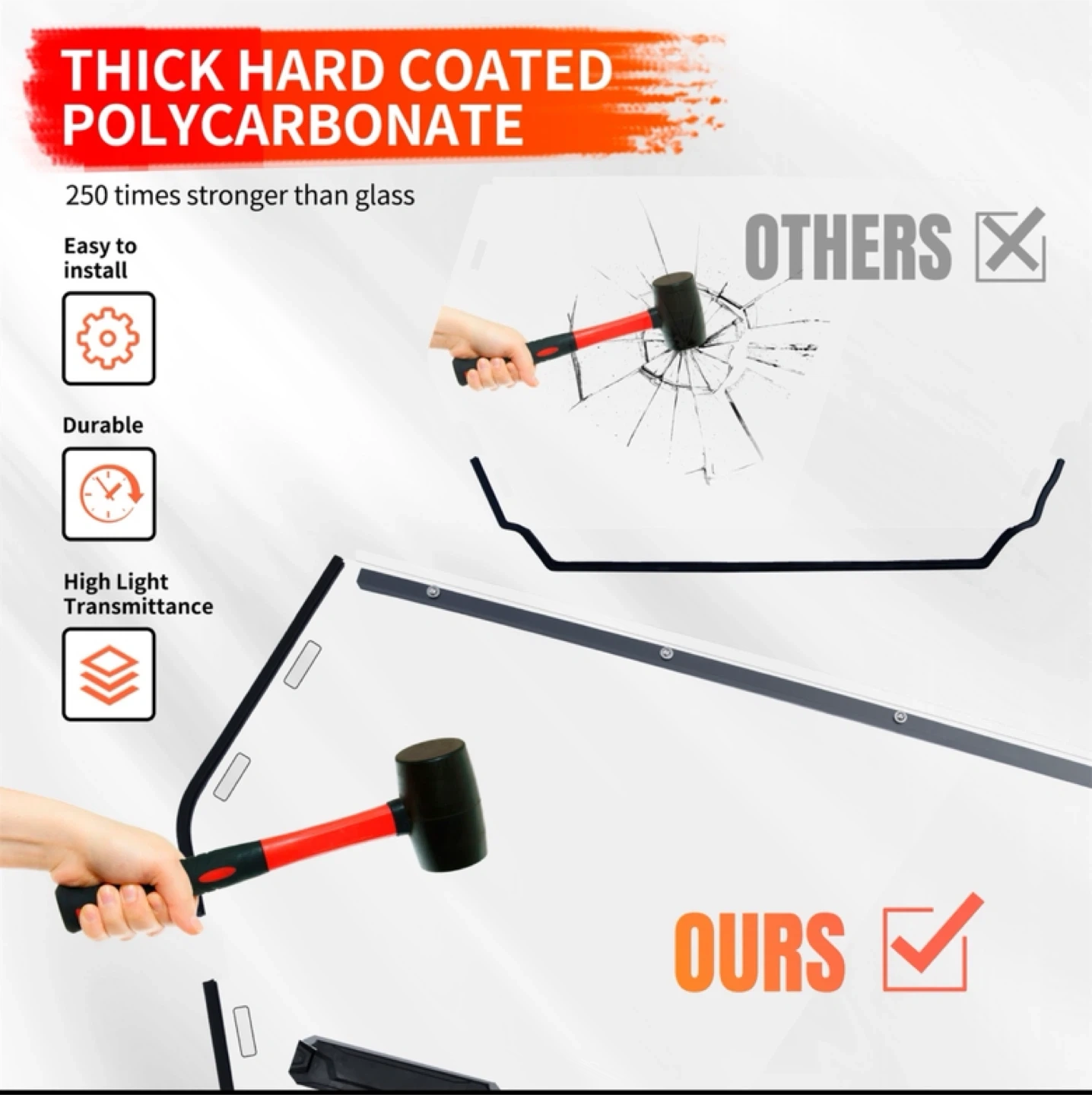 This windshield is made of high-quality polycarbonate materials, making it light and strong. It offers maximum visibility and impact resistance. It also has high light transmittance, improving driving safety with a hard coat layer that gives great scratch resistance and is durable.