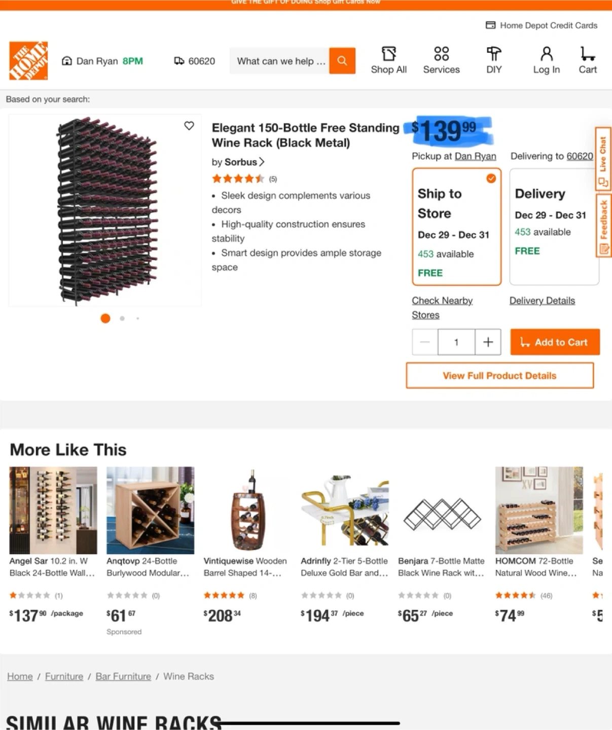 Selling an Elegant 150-Bottle Free Standing Wine Rack in black metal! It's a sleek design that complements various decors. Its high-quality construction ensures stability, and the smart design provides ample storage space. Originally bought for $139.99 and includes the box