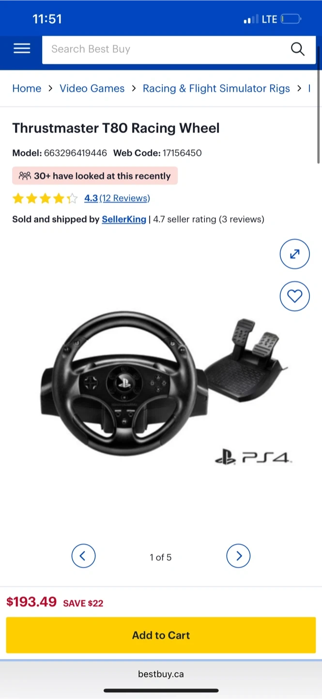 Selling a Thrustmaster T80 racing wheel and pedal set for PS4! It's in great condition and ready for some serious gaming. Originally bought for $193.49