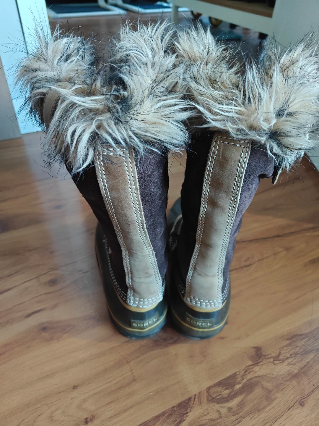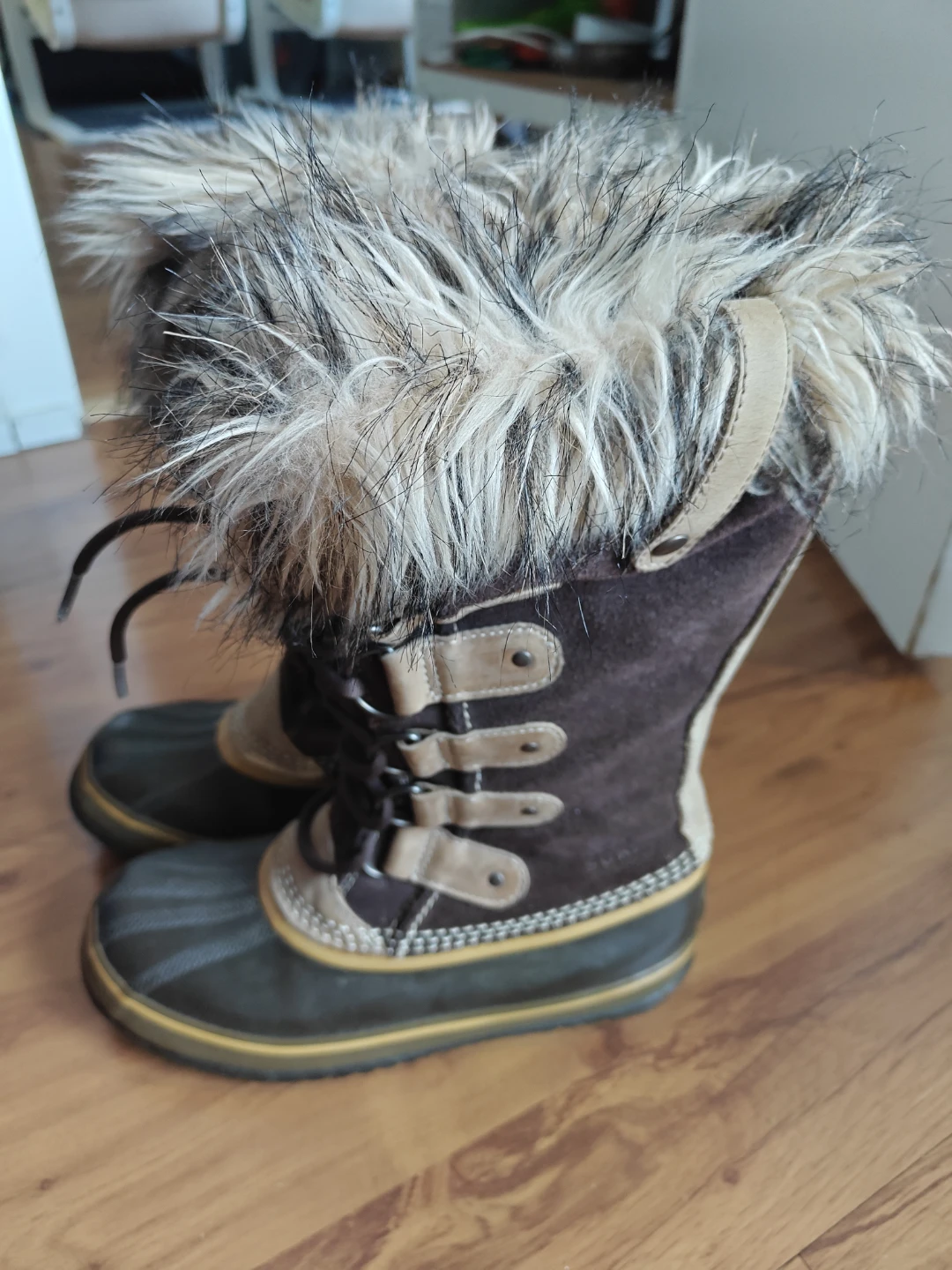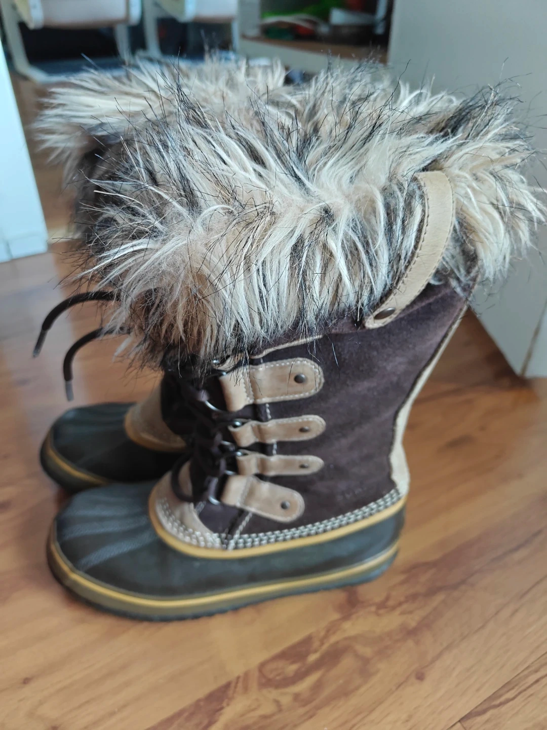 Cozy Sorel winter boots in great condition! They're super warm and perfect for Canadian winters. The boots are a size 8 and have a stylish faux fur trim.