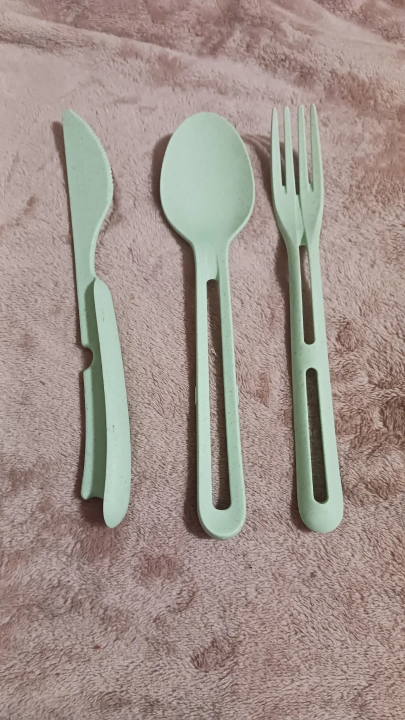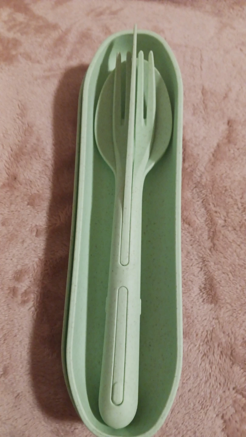 Selling a reusable travel utensil set! It includes a fork, spoon, and knife, all in a matching mint green carrying case. Perfect for taking your lunch to work or school, or for camping and picnics. Lightweight and portable! Never used!