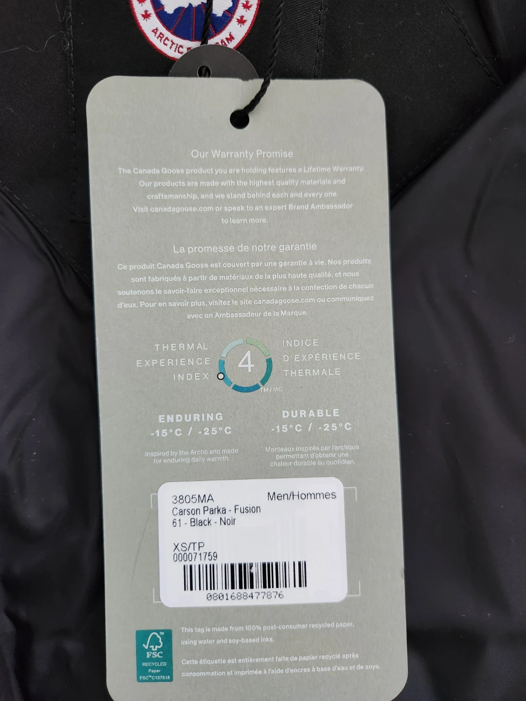 Selling a brand new Canada Goose Carson Parka in black, size XS/TP (extra small/très petit). This mid-thigh length design provides exceptional warmth against the cold in fall and winter months. Durable and enduring, inspired by the Arctic and made for enduring daily warmth. Retails for $1,595