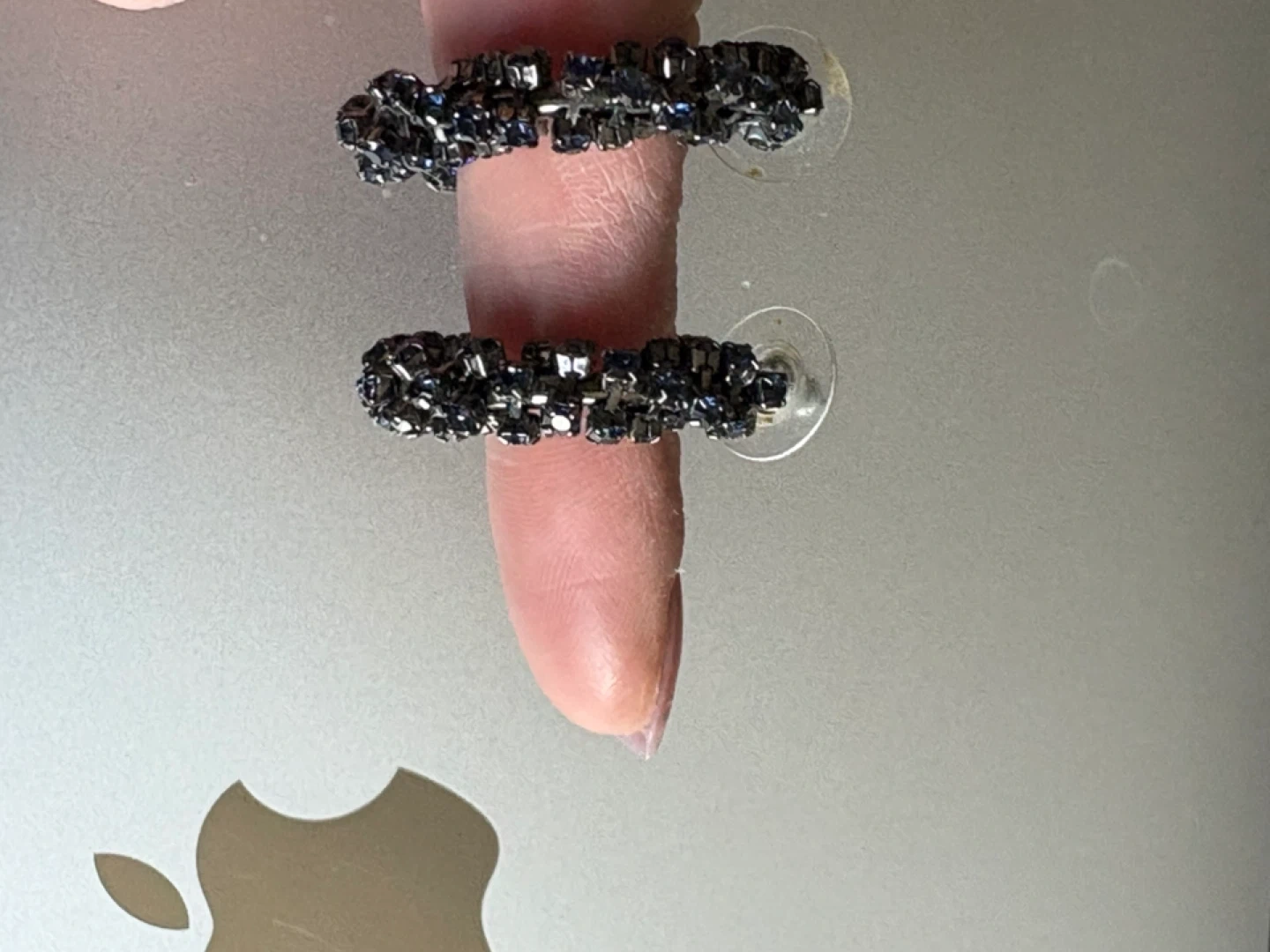These are a pair of sparkly blue hoop earrings. They're in excellent condition and would be a fun addition to any outfit!