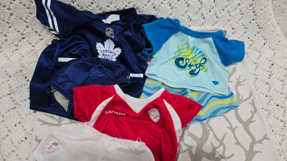 Outfits for your Build-A-Bear companion. Shoes included. Selling price as a lot and not individual. No low ballers. The money made from this sale will be donated to Etobicoke Humane Society.