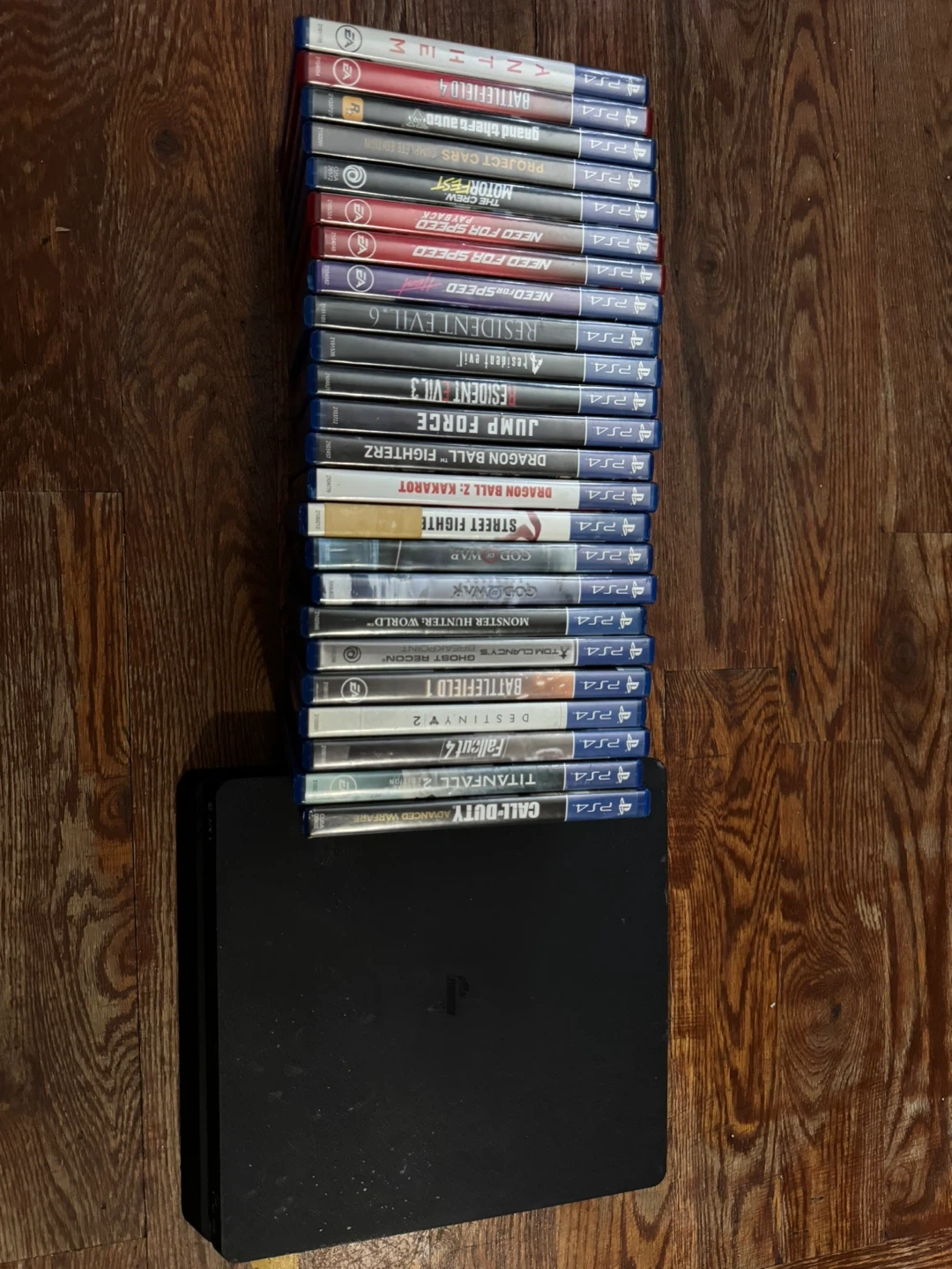 Selling a used Playstation 4 with 24 games. The console is in good condition. All games are for the Playstation 4.