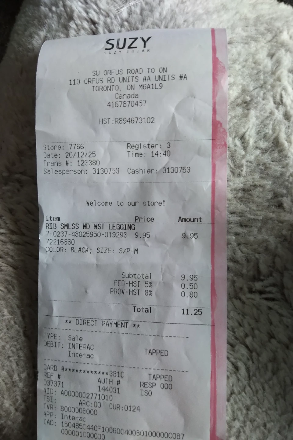 Attached is receipt.$11.25