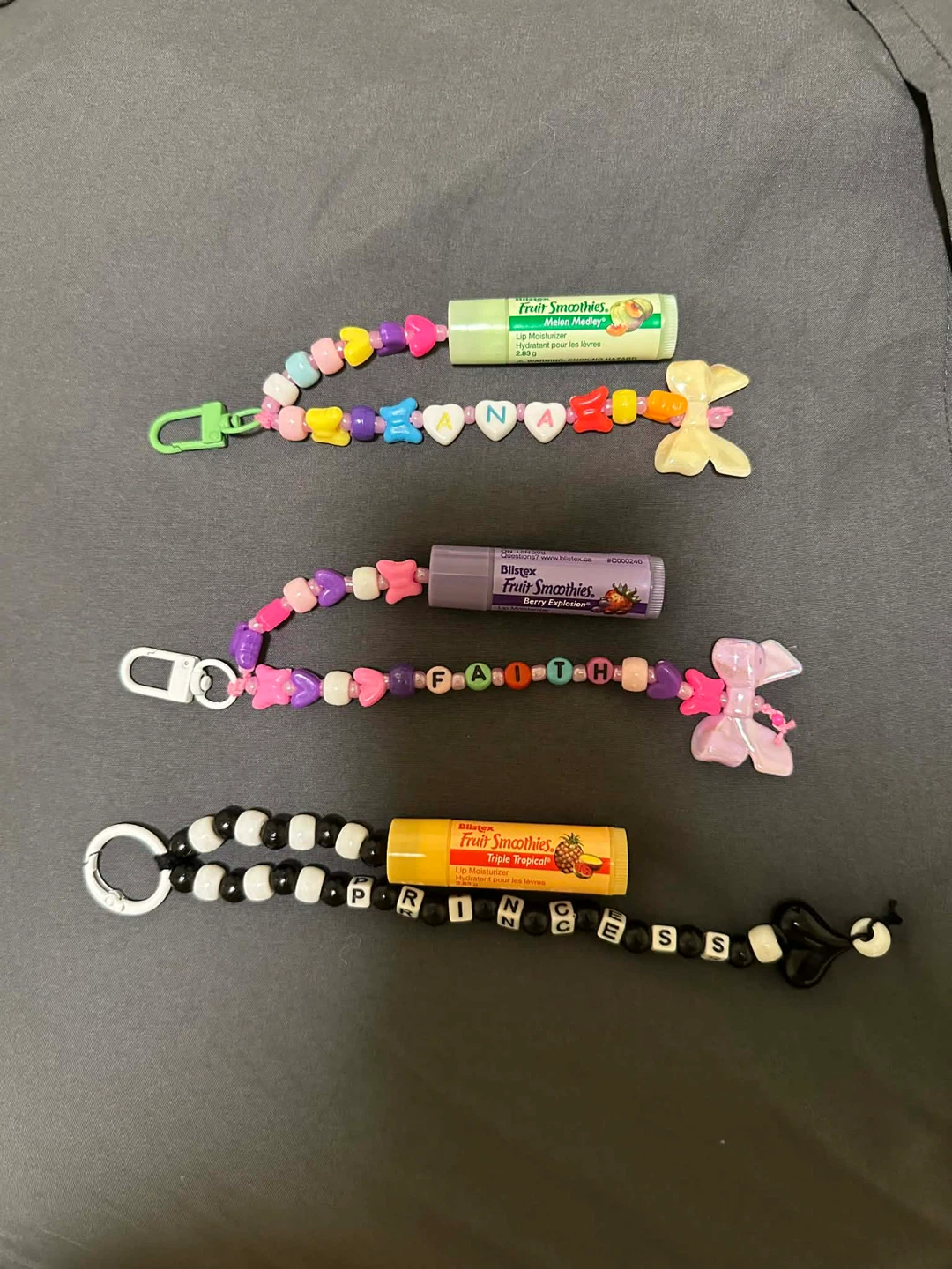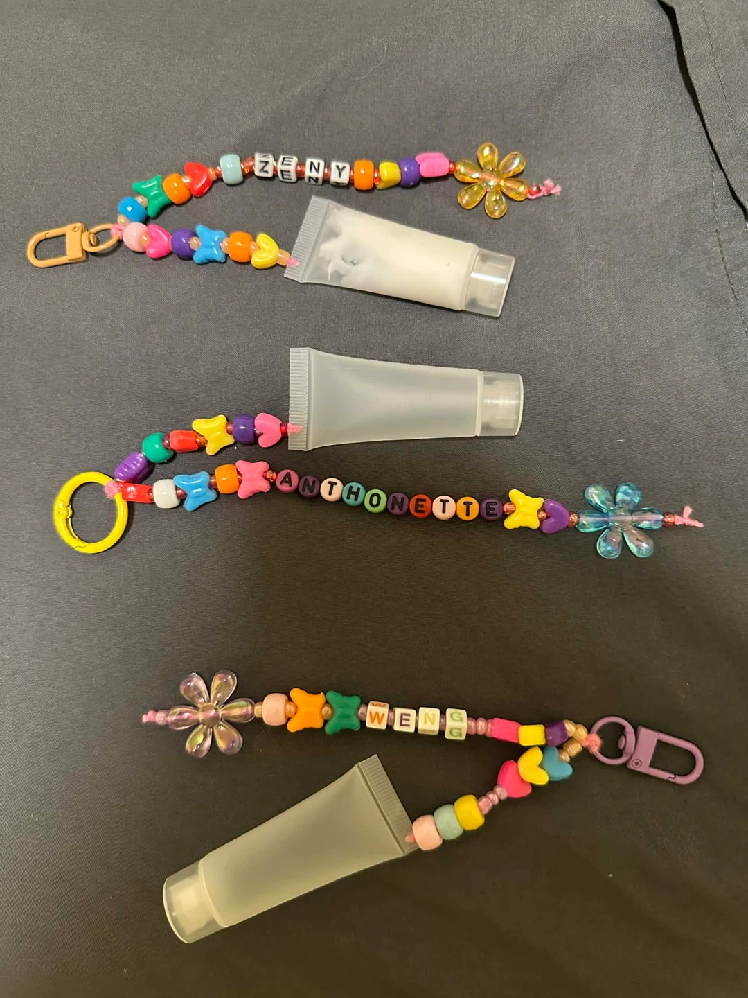 I'm selling these cute Customized Bag charms with lipbalm/moisturizer! They're a fun way to keep your lip balm or moisturizer handy and add a little personality to your bag or keys.