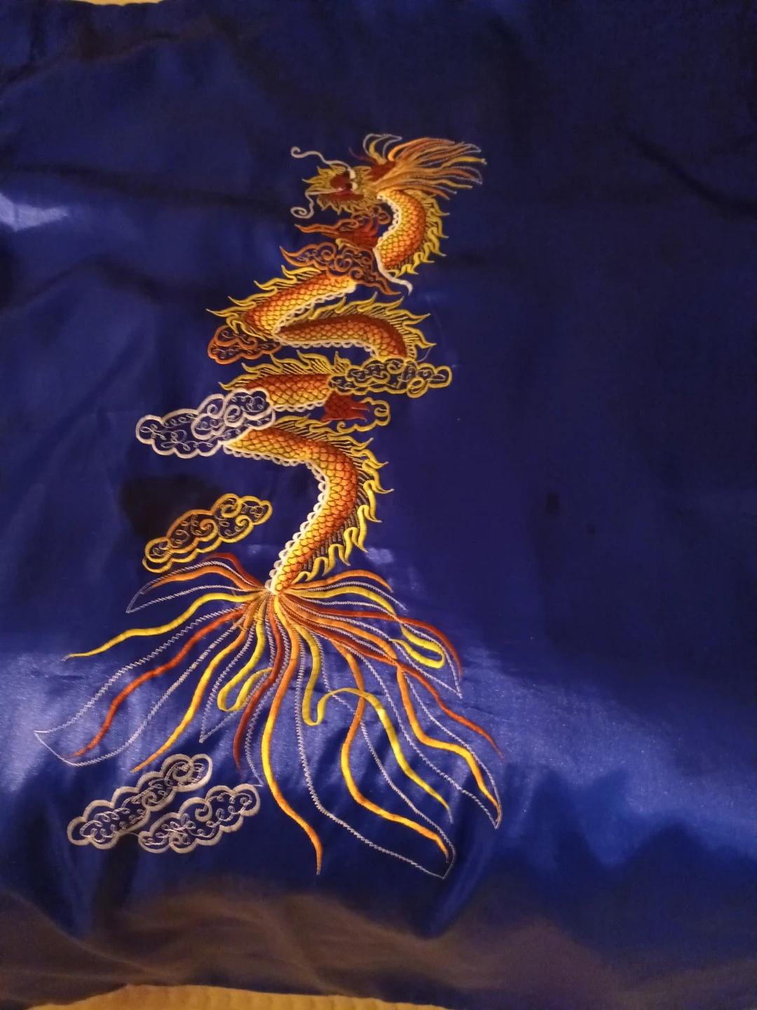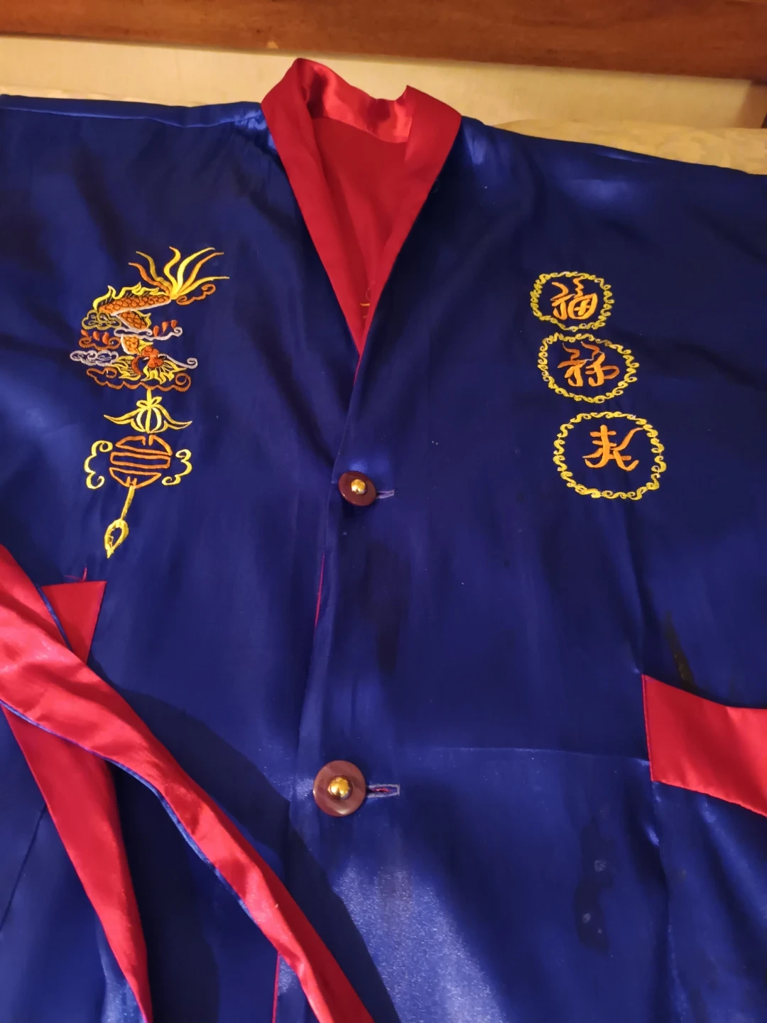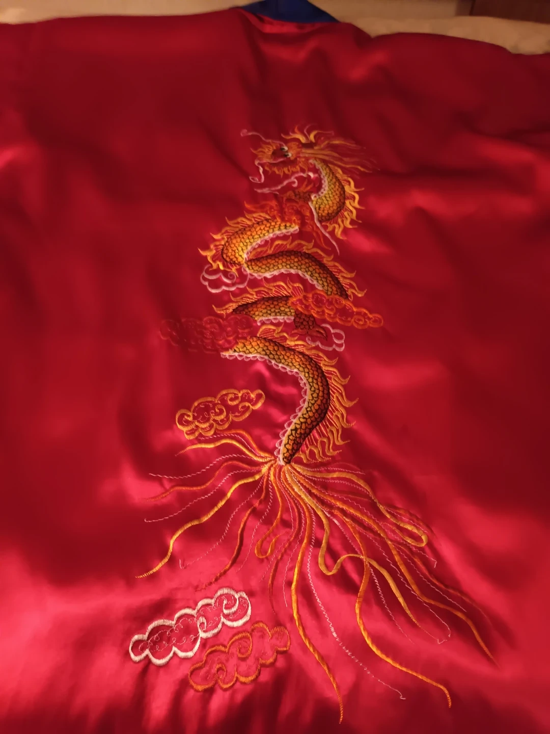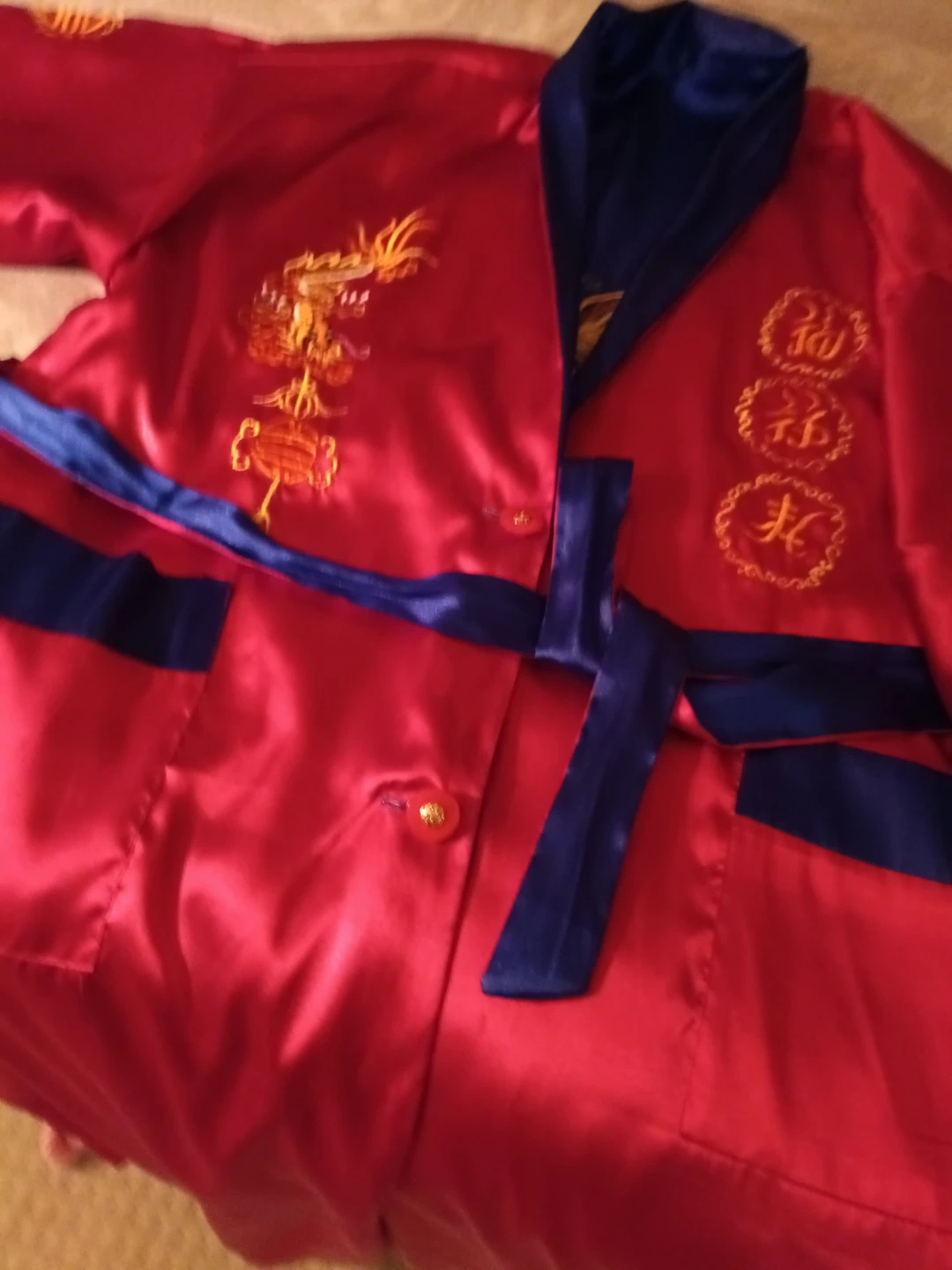 reversible either red or blue. - size 38in to 44in. long sleeves - calf length also embroidered if worn reversed
