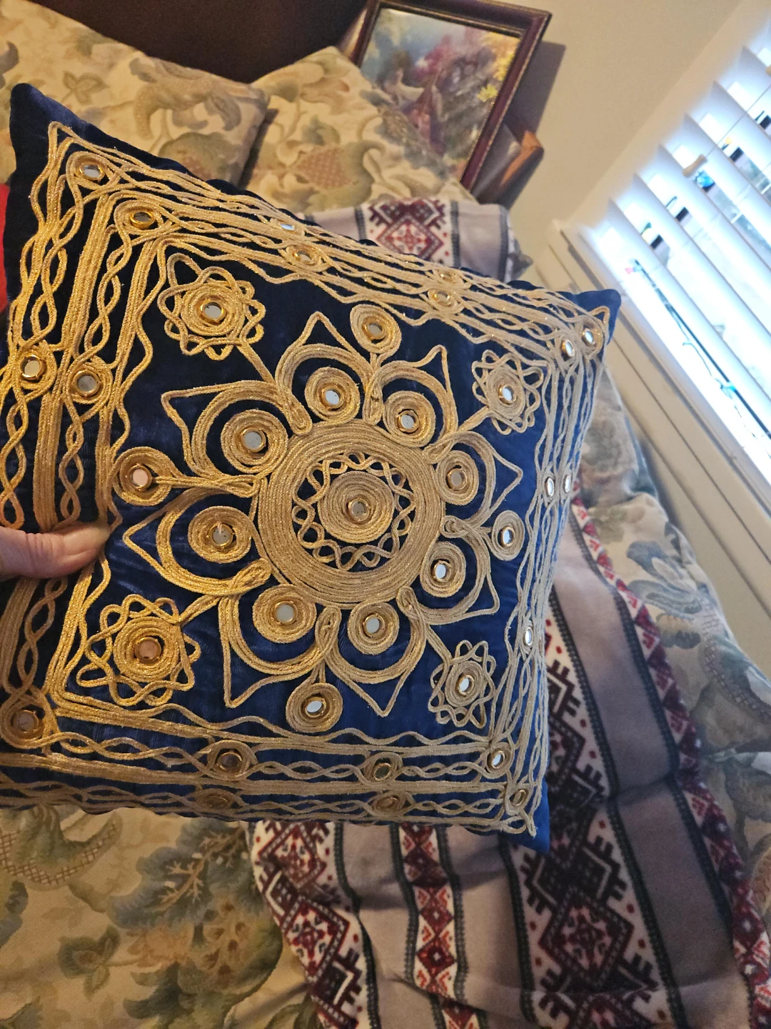 Buy & SellDecorative Blue & Gold PillowDecorative Blue & Gold Pillow$8This is a beautiful decorative pillow with intricate gold detailing on a blue background. It would be a lovely addition to any living room or bedroom!ConditionLike newWHERE TO MEETmy placeView MapSELLERverifiedTamaraFern Ridge600 reviews0 chats·0 favorites·10 viewsSEND CHAT TO SELLERHi Tamara! I’m interested in your listing.Hi Tamara! I’m interested in your listing.Get the Karrot app to chatSign In to chat