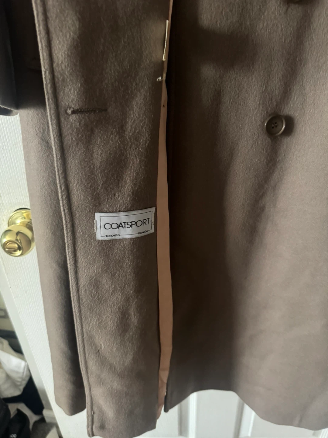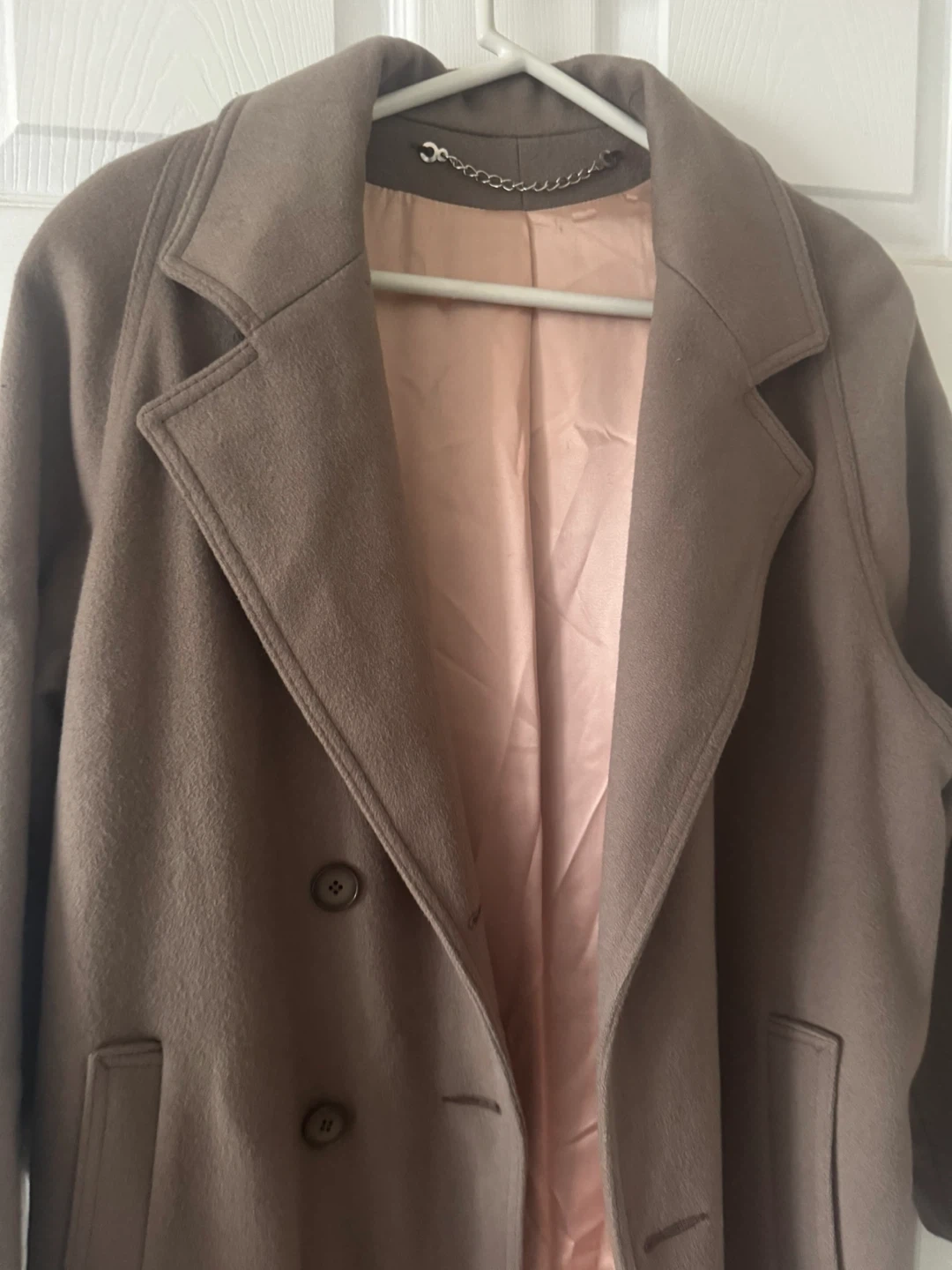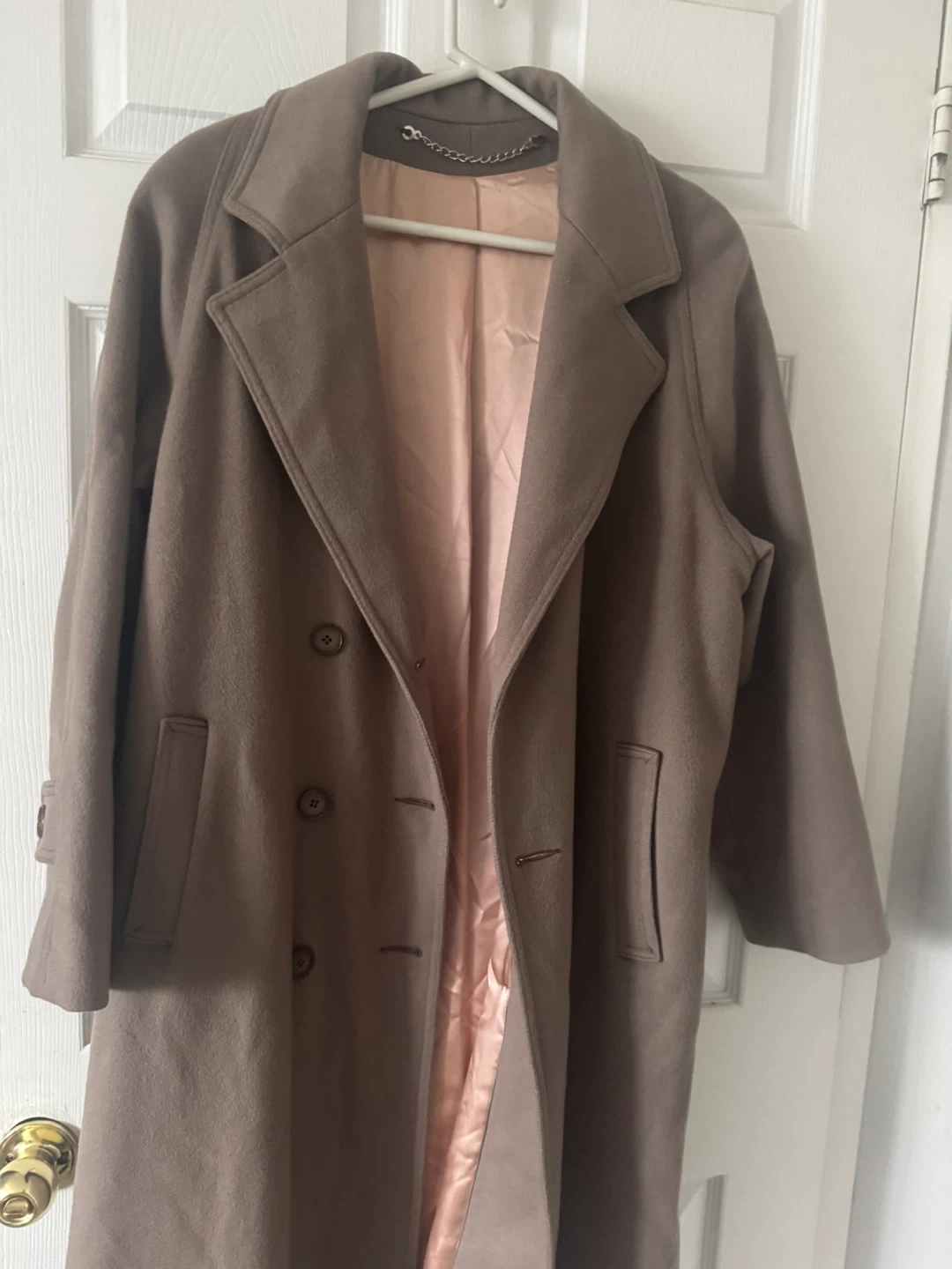 Selling a stylish Woolen brown trench coat with a belted waist. It's in great condition and perfect for fall or spring! The coat has a double-breasted button closure and a soft, silky lining.